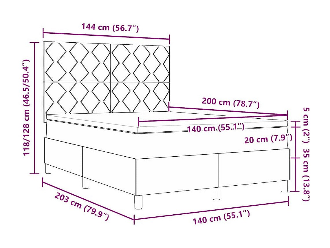 Letto box spring con materasso Grigio scuro 140 x 200 cm