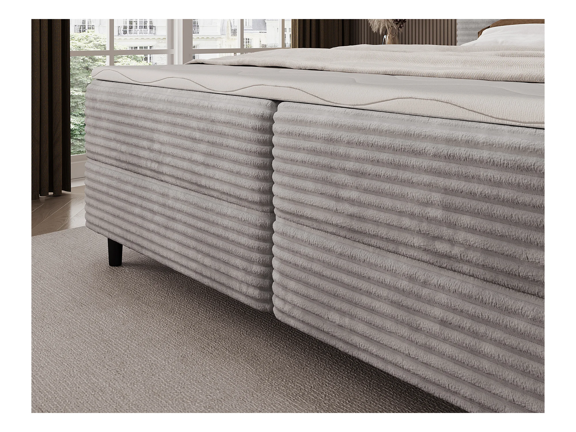 Letto box spring con materasso e contenitore, tessuto LUDANO Noel grigio chiaro 140x200 cm H2-Pocket