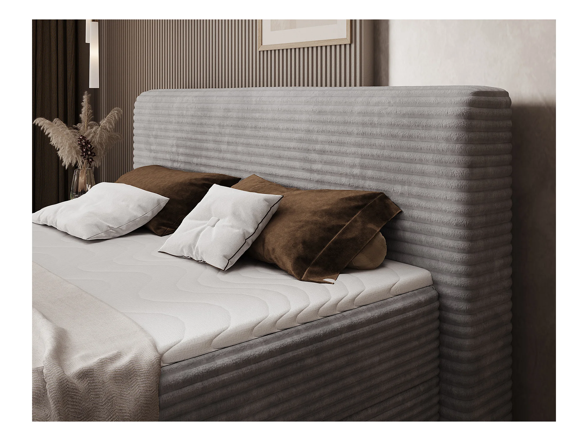 Letto box spring con contenitore e topper TRENTO tessuto peluche cordoncino 140x200 cm grigio scuro H3-Bonell