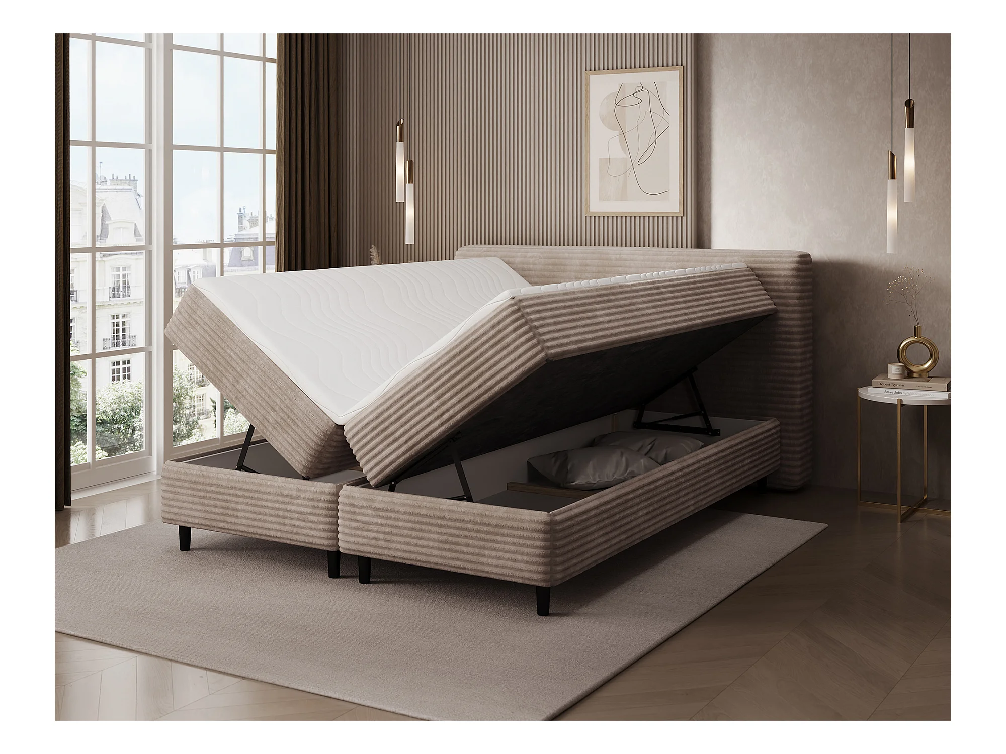 Letto box spring con materasso e contenitore, tessuto LUDANO Noel Brown 140x200 cm H2-Pocket