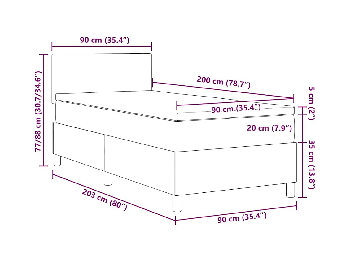 Letto box spring con materasso Grigio scuro 90 x 200 cm Tessuto