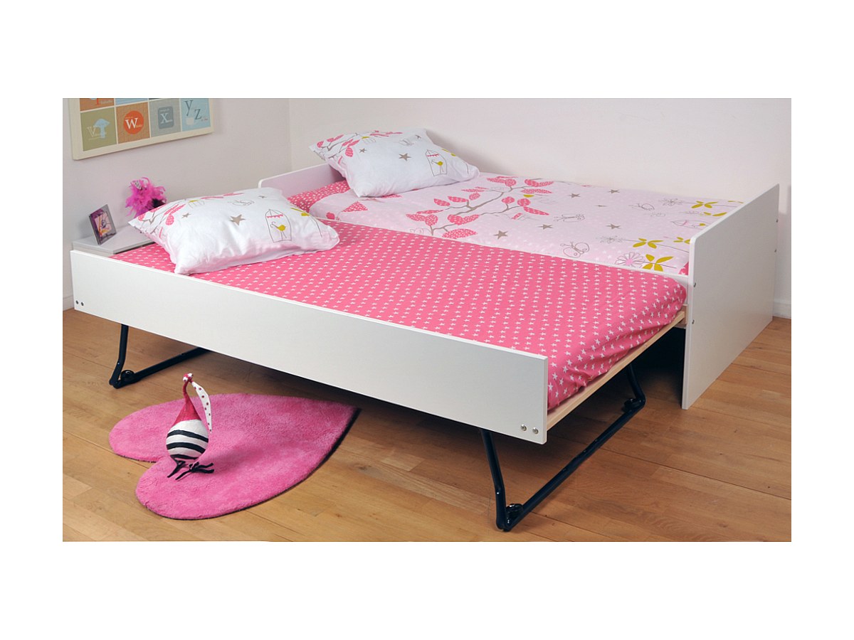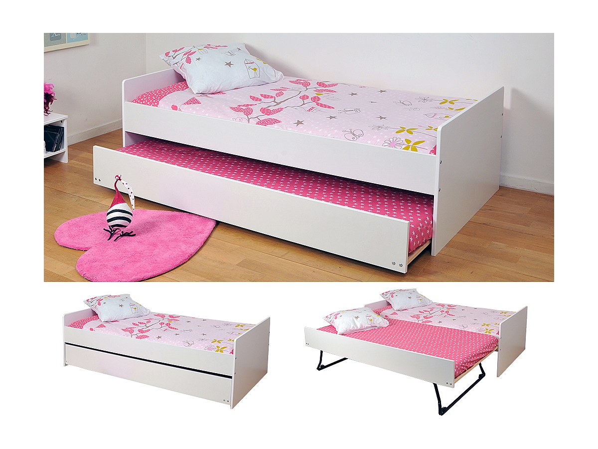 Letto singolo con letto estraibile 90 x 190 cm Laccato bianco - NOLAN