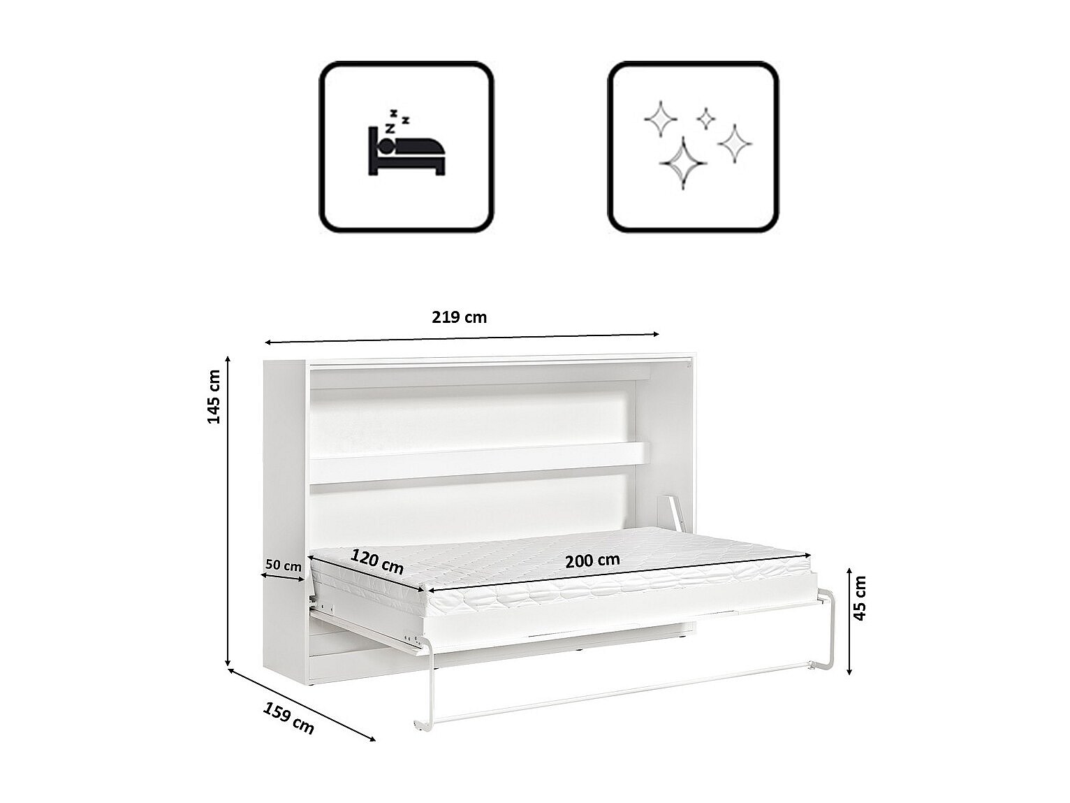 Letto a scomparsa orizzontale 120x200 perfetto che unisce design e funzionalità con materasso in rovere + bianco