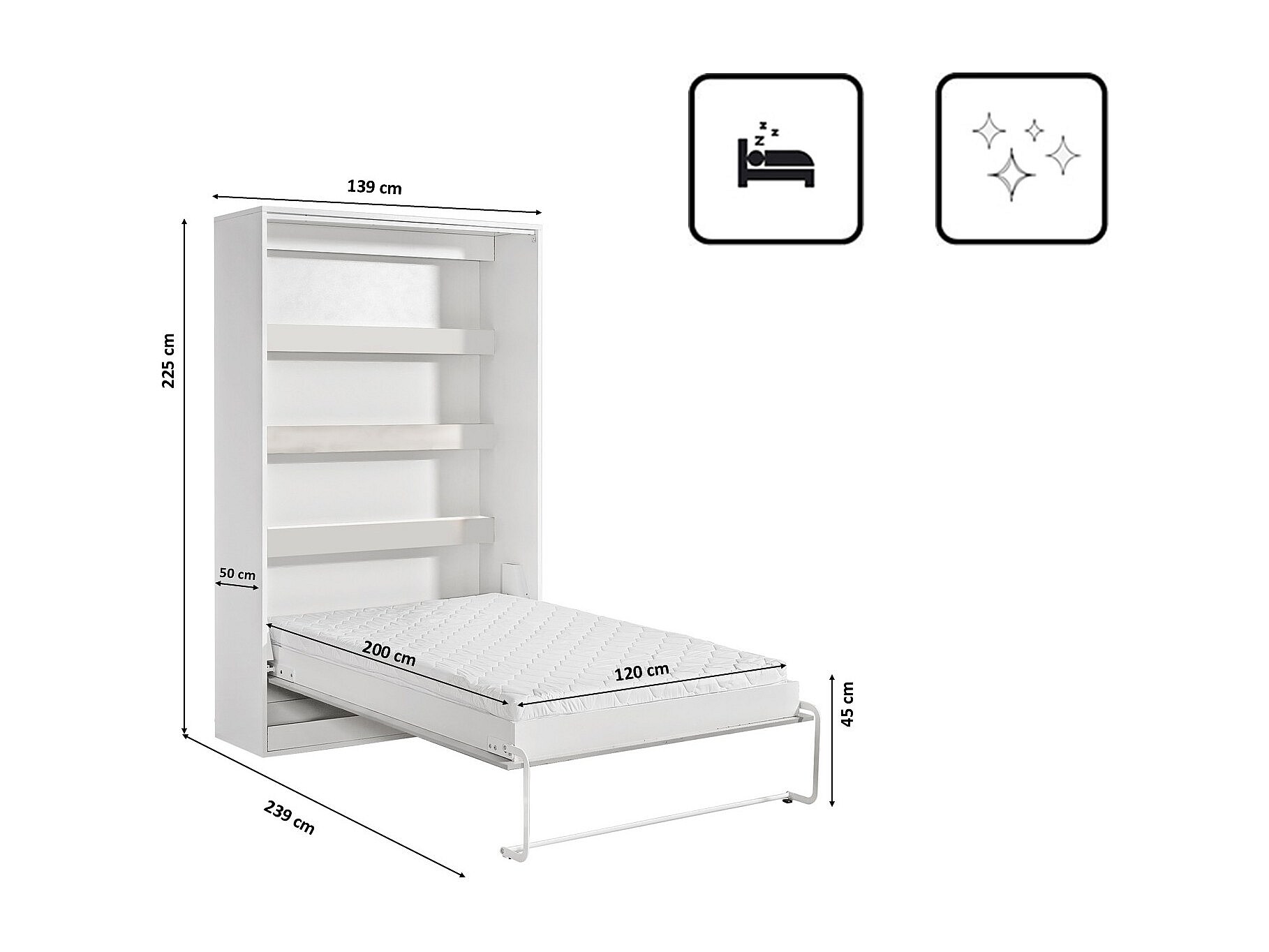 Letto a scomparsa orizzontale 120x200 perfetto che unisce design e funzionalità con materasso in rovere + bianco