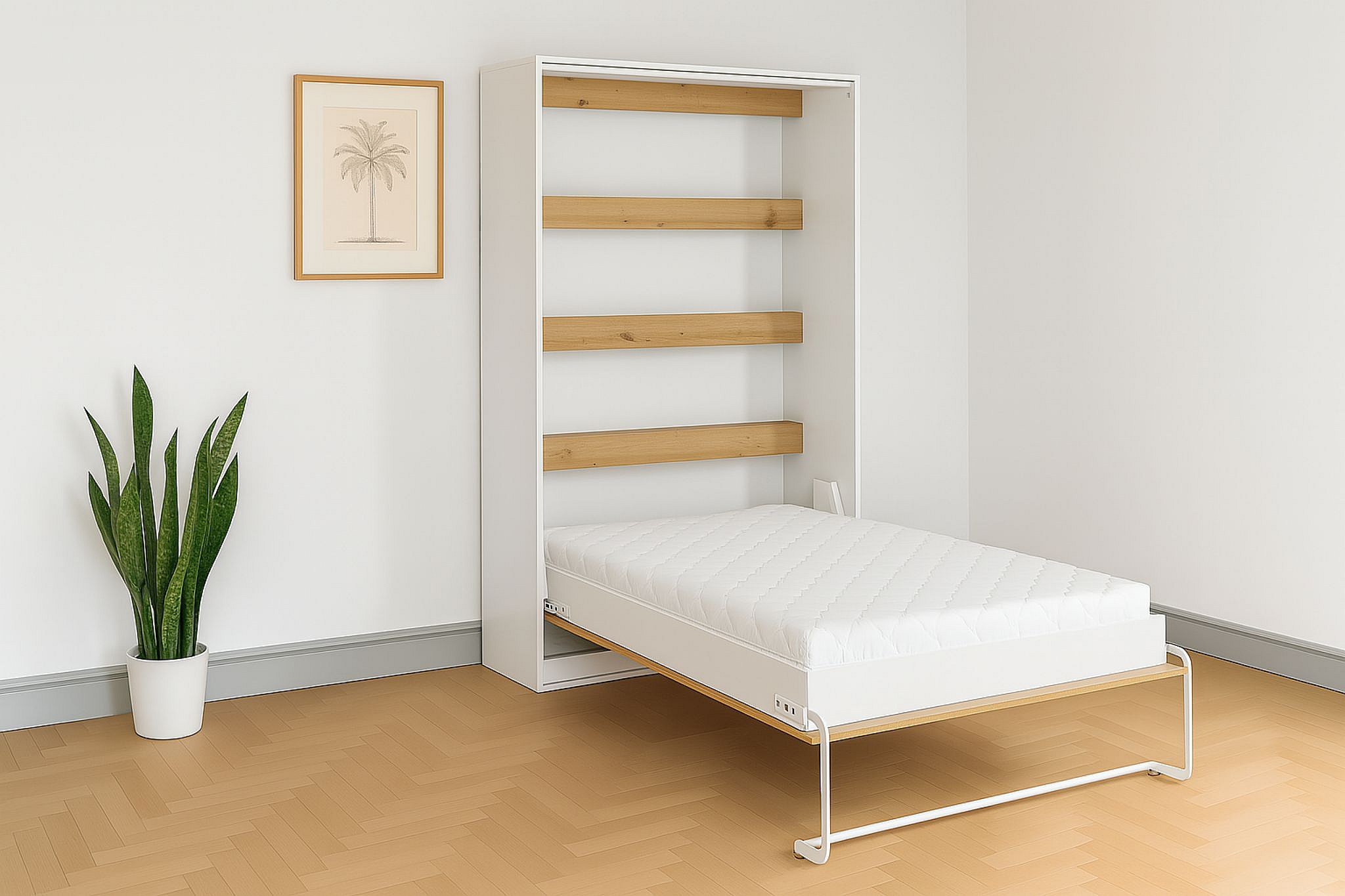 Letto a scomparsa orizzontale 120x200 perfetto che unisce design e funzionalità con materasso in rovere + bianco