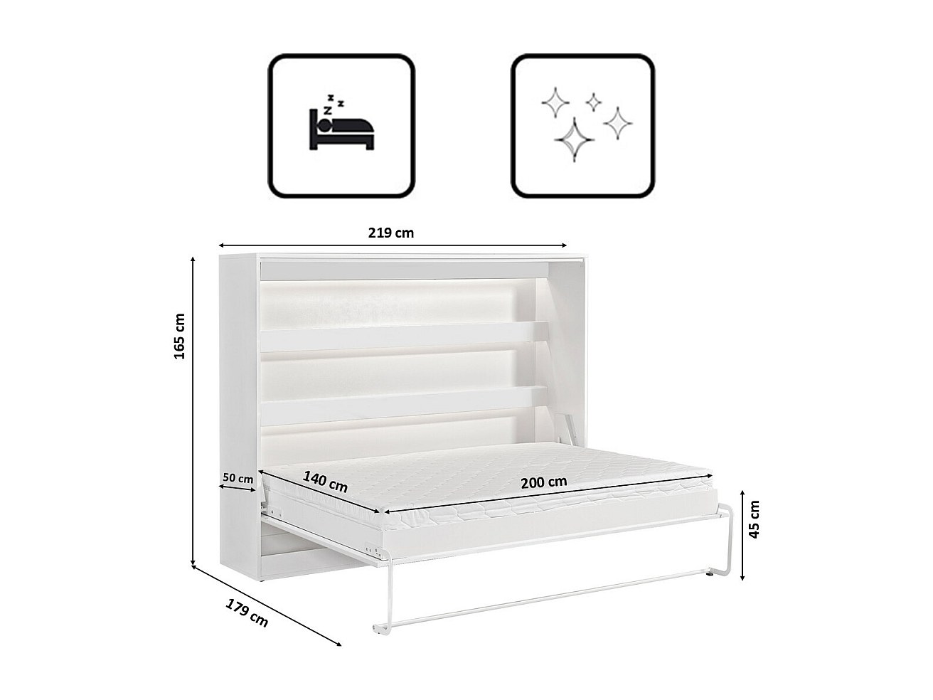 Letto estraibile 140 x 200 cm Apertura orizzontale manuale Con LED Bianco + Materasso - RAPILI