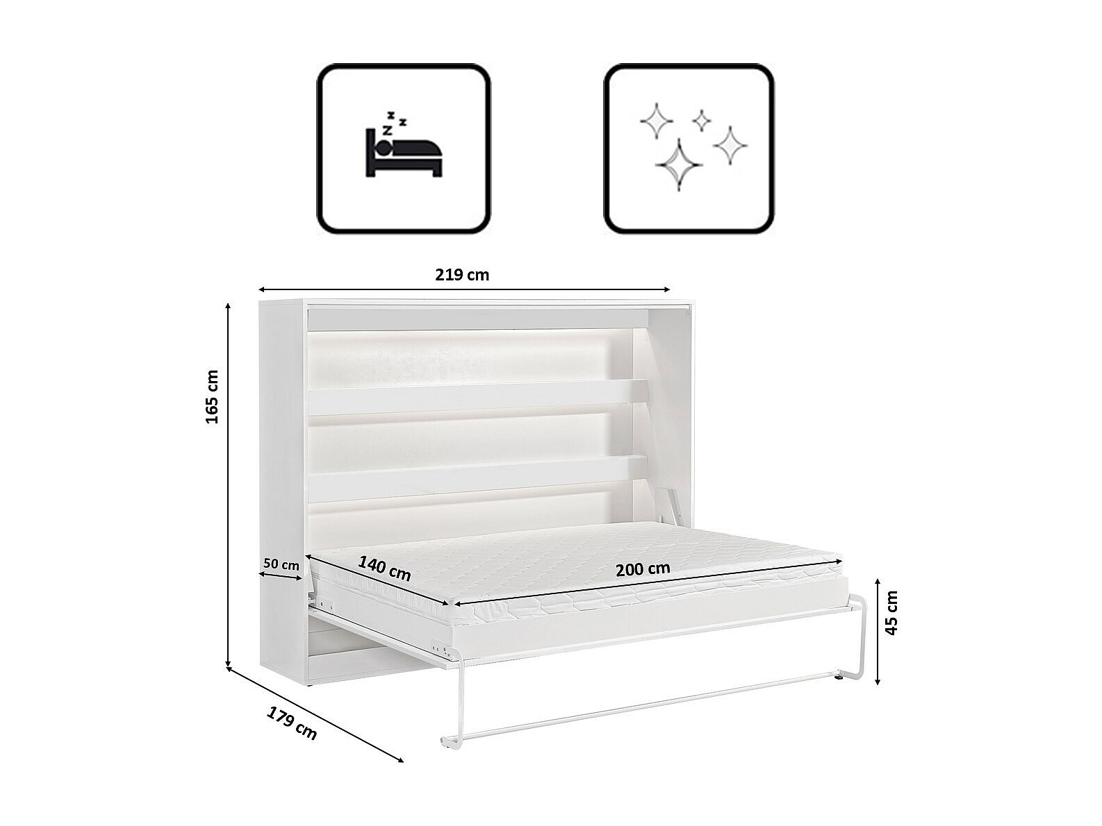 Letto a scomparsa Perfect 140x200 un letto orizzontale che unisce design e funzionalità Bianco