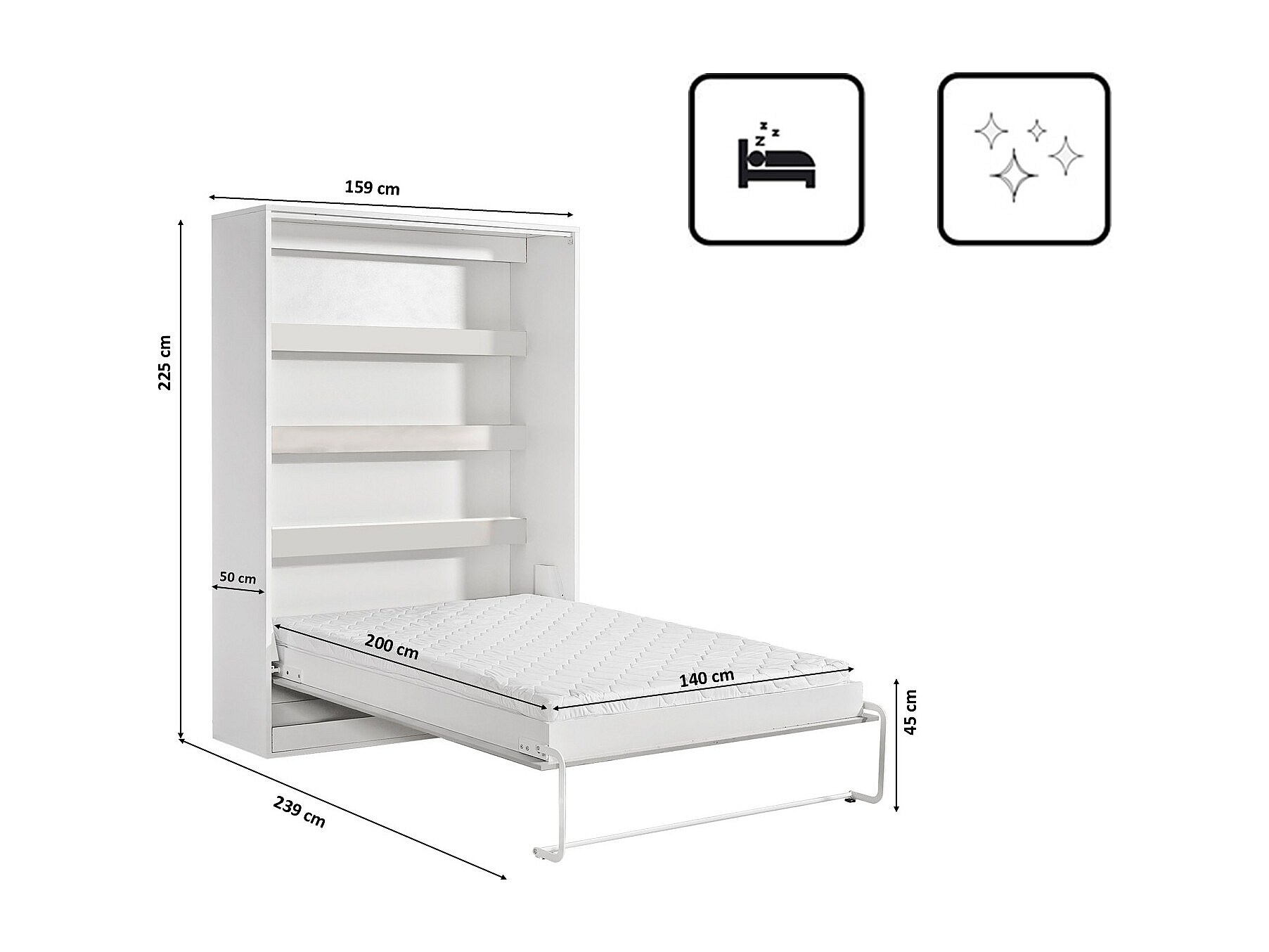 Letto guardaroba verticale perfetto 140x200 che unisce design e funzionalità con materasso bianco+nero