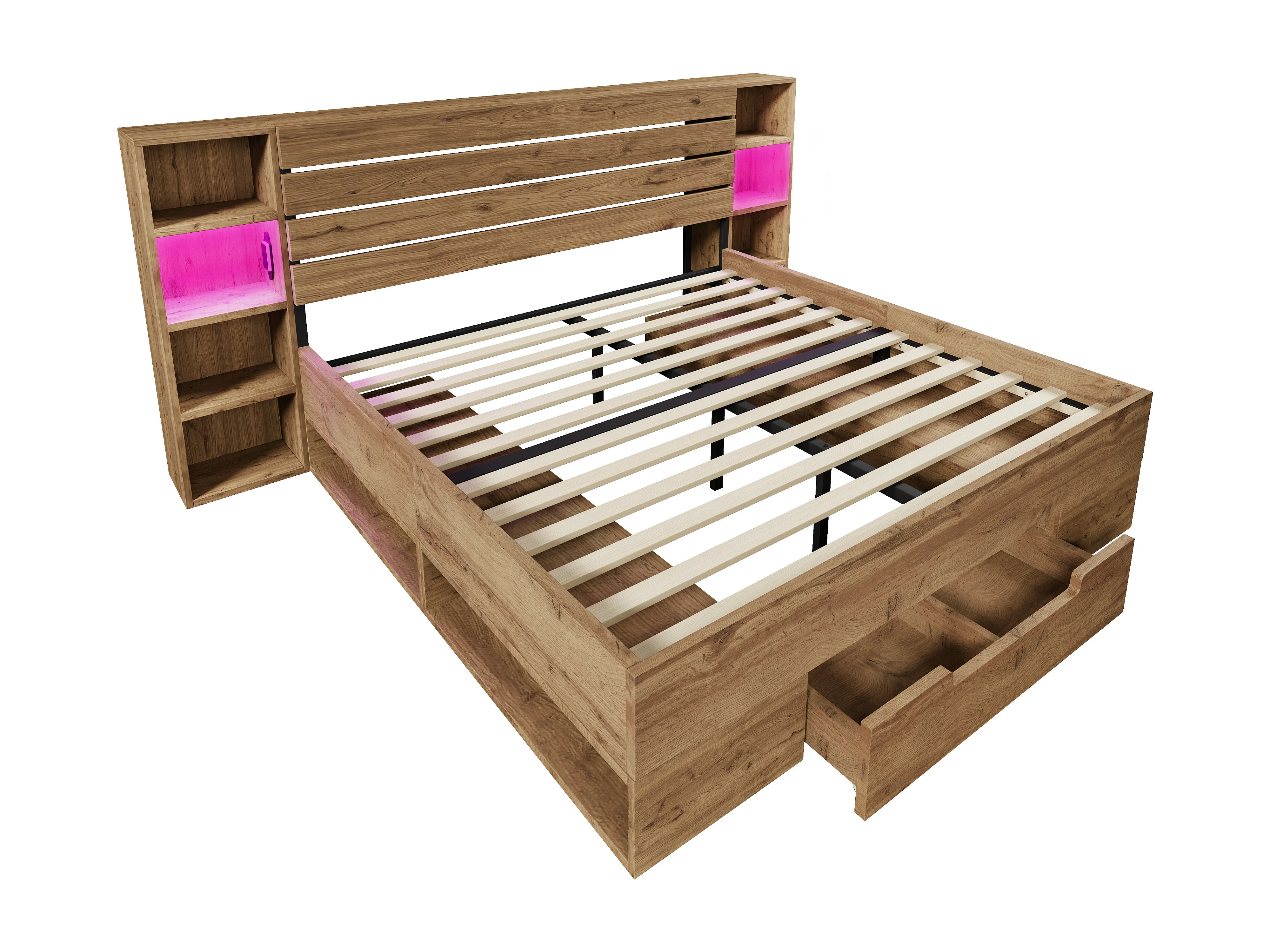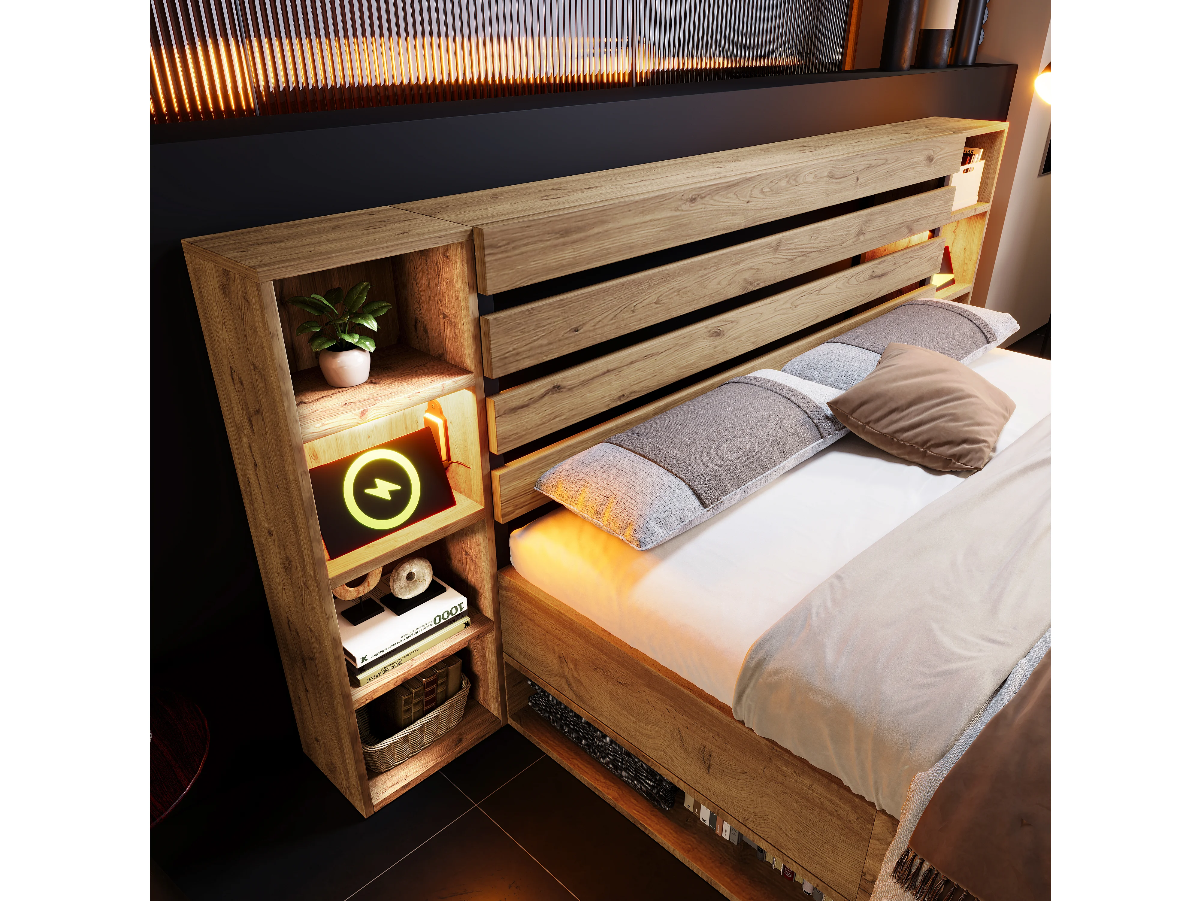 Letto con contenitori e cassetti