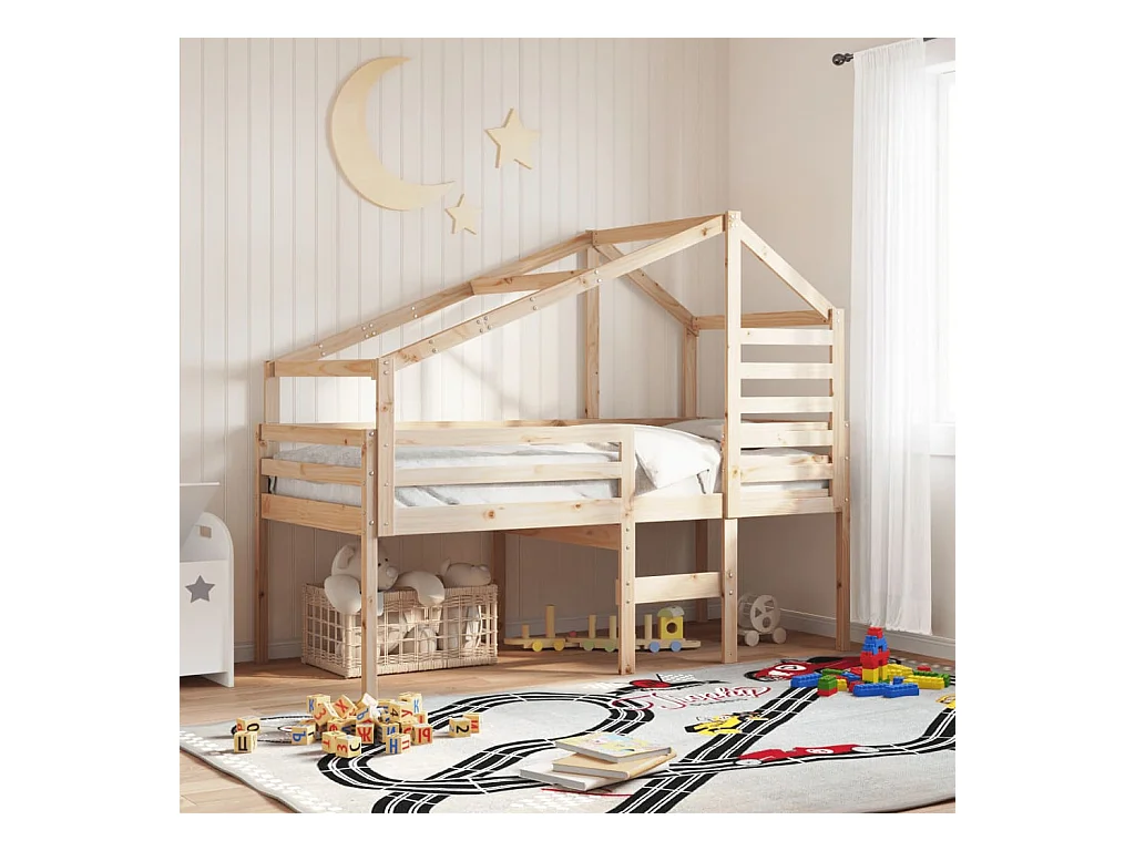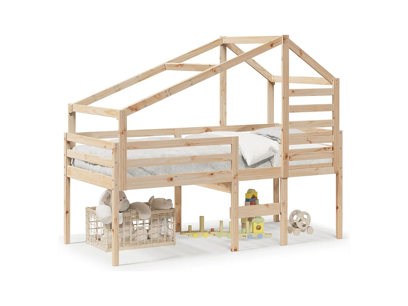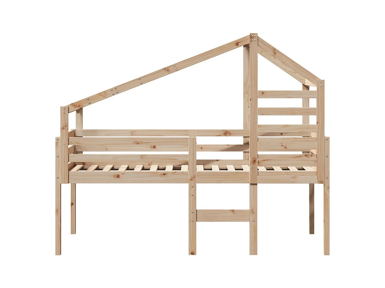 Struttura letto per bambini a forma di casa senza materasso in pino