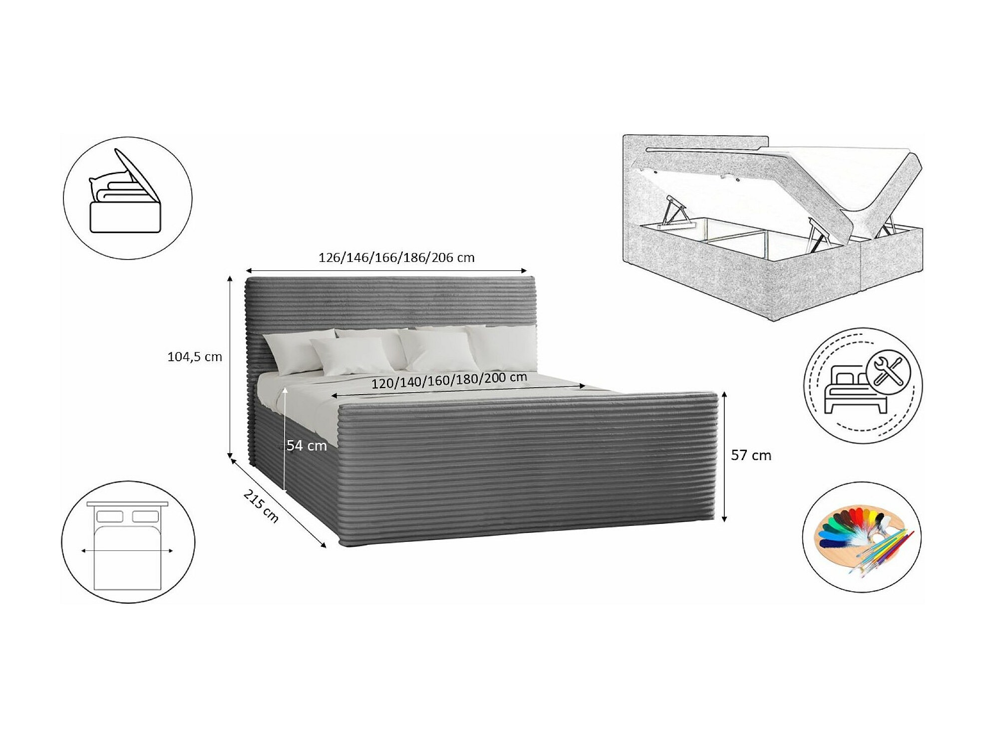 Letto box spring con contenitore e topper TRENTO tessuto peluche cordoncino 120x200 cm grigio scuro H3-Bonell