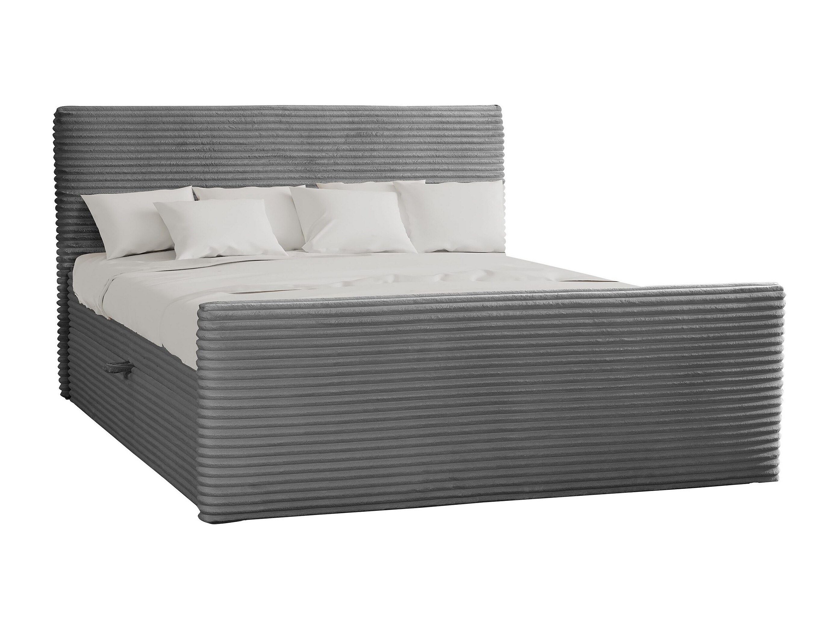 Letto box spring con contenitore e topper TRENTO tessuto peluche cordoncino 160x200 cm grigio scuro H3-Bonell