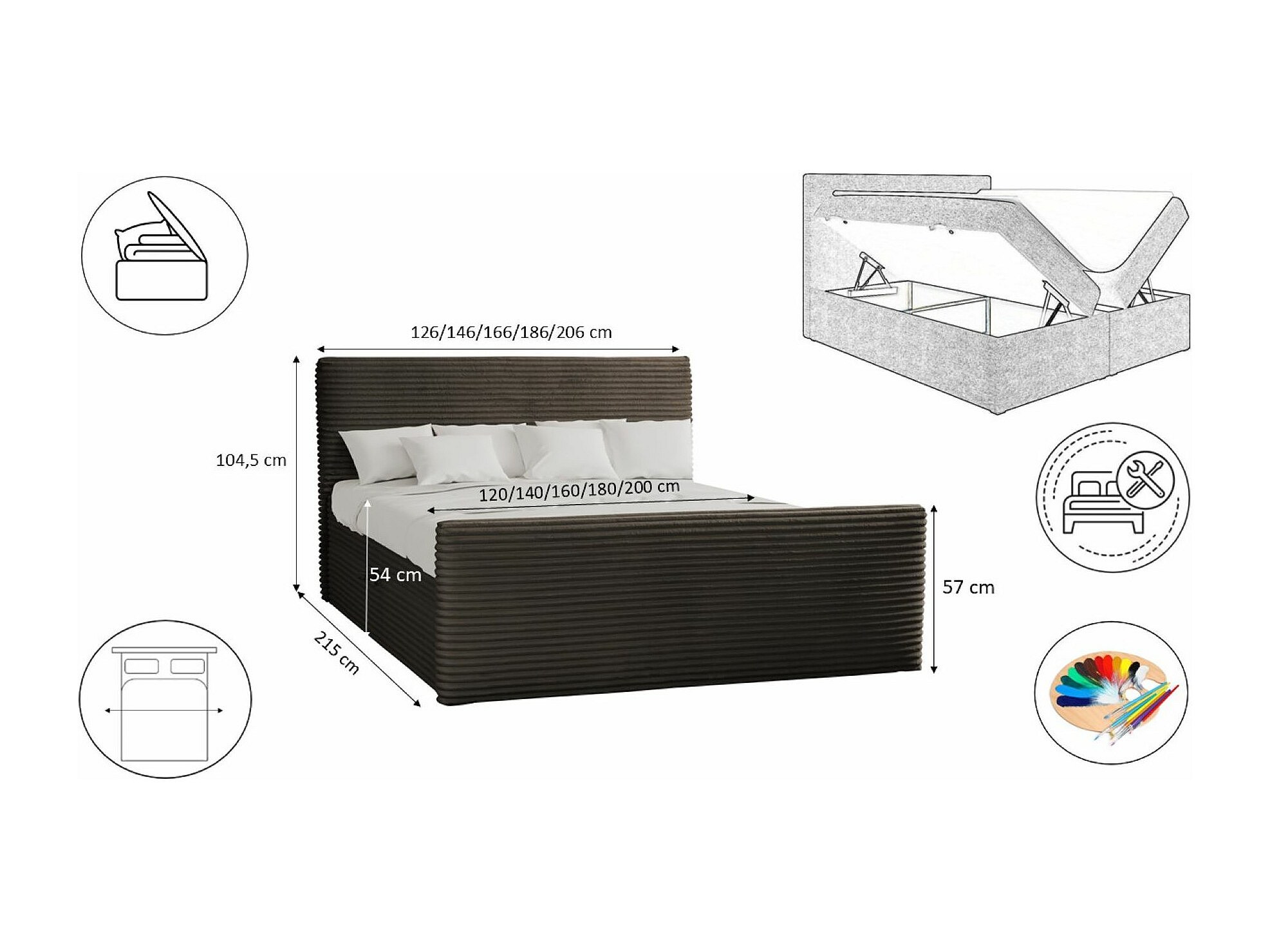Letto box spring con contenitore e topper TRENTO tessuto peluche cordoncino 180x200 cm marrone H3-Bonell