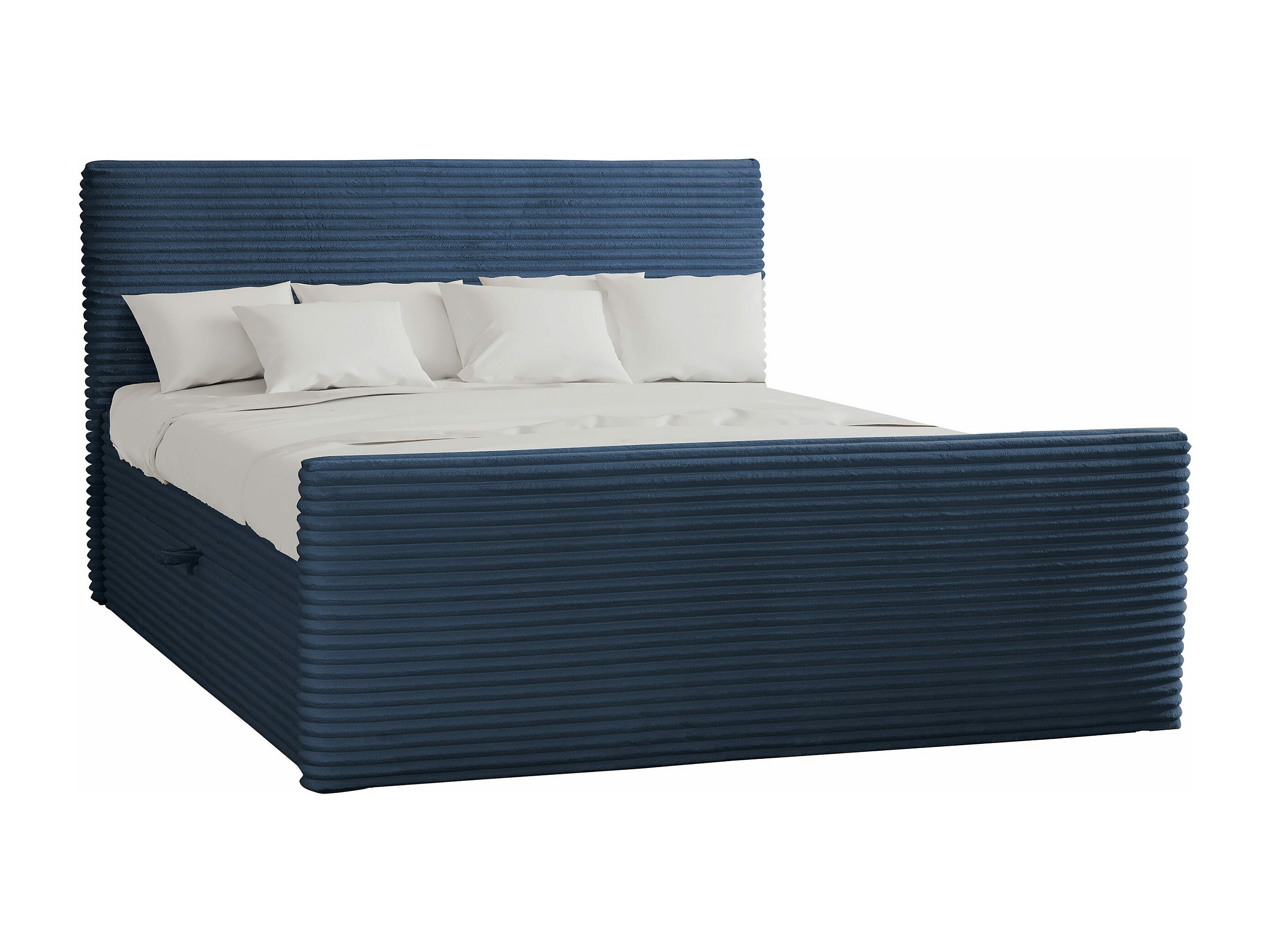 Letto box spring con contenitore e topper TRENTO tessuto peluche cordoncino 200x200 cm blu scuro H3-Bonell