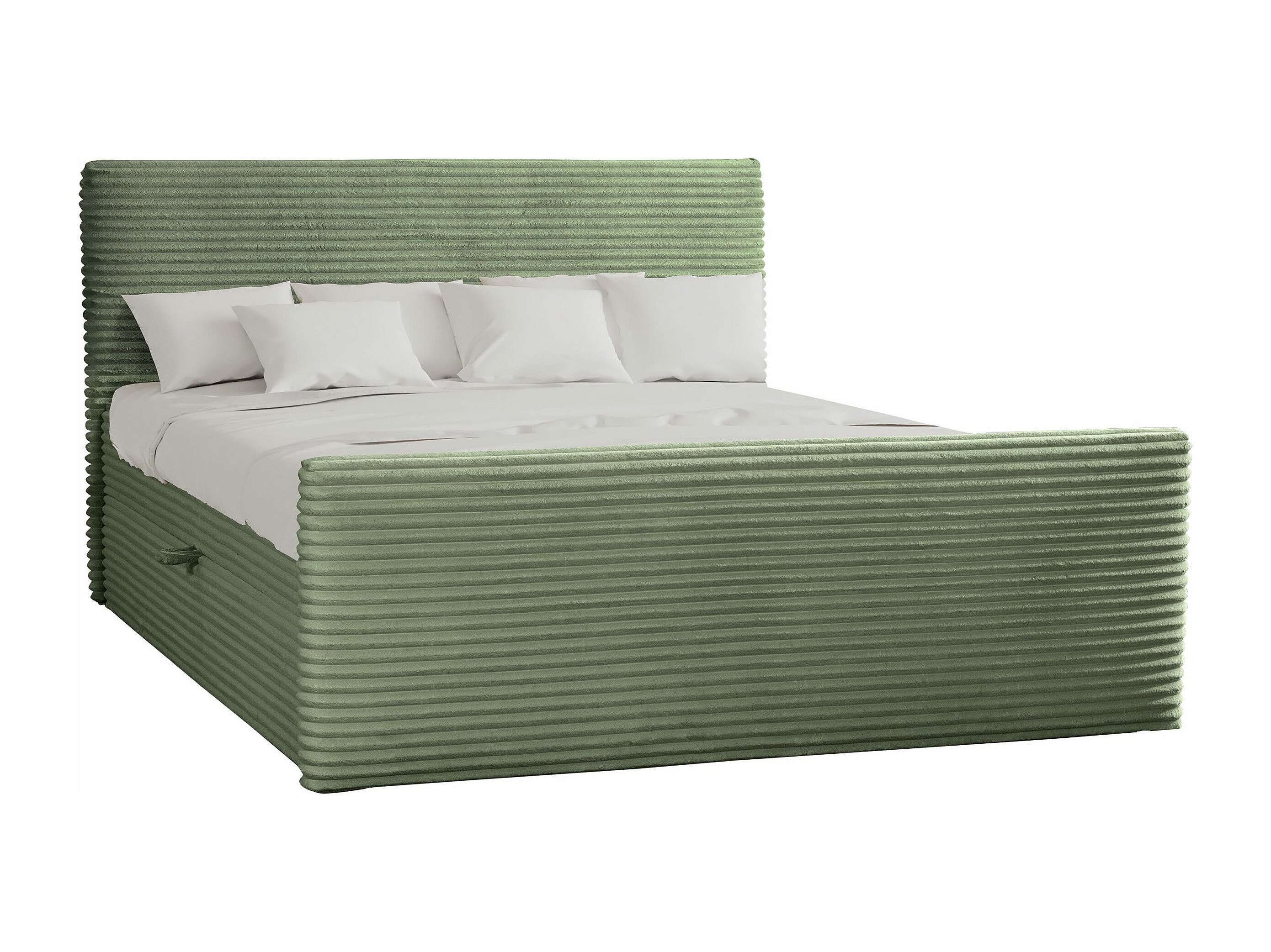 Letto box spring con contenitore e topper TRENTO tessuto peluche cordoncino 200x200 cm Olive H3-Bonell