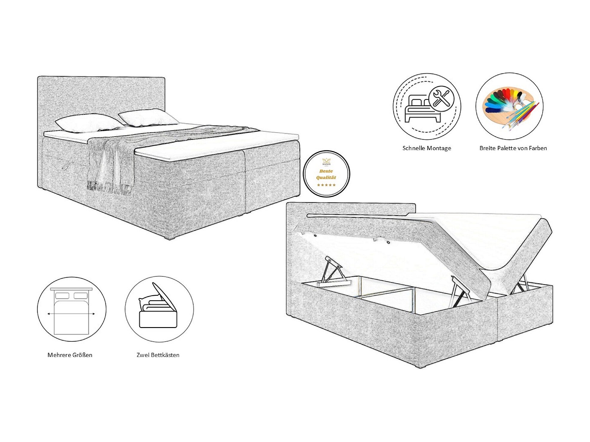 Letto box spring con materasso e contenitore, letto LUDANO tessuto Noel grigio chiaro 120x200 cm H3-Bonell