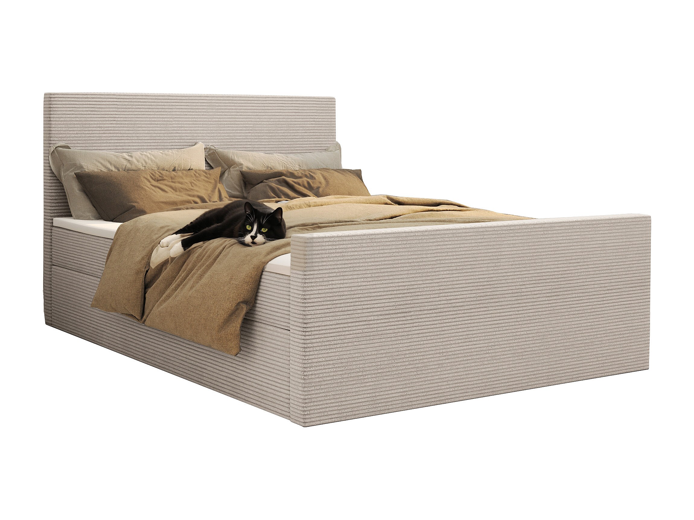 Letto box spring con rete e topper tessuto VIESTA Poso Beige 160x200 cm H3-Bonell