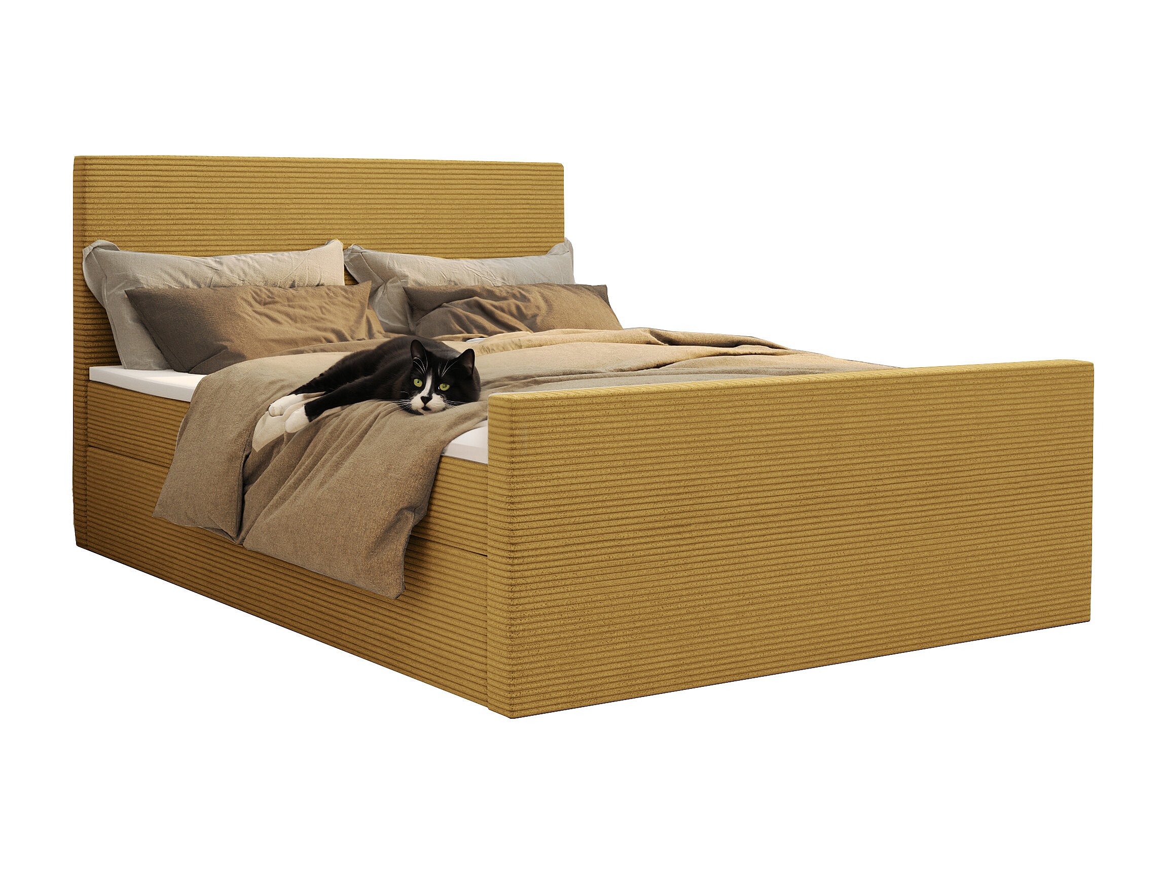 Letto box spring con rete e topper tessuto VIESTA Poso Giallo 180x200 cm H3-Bonell