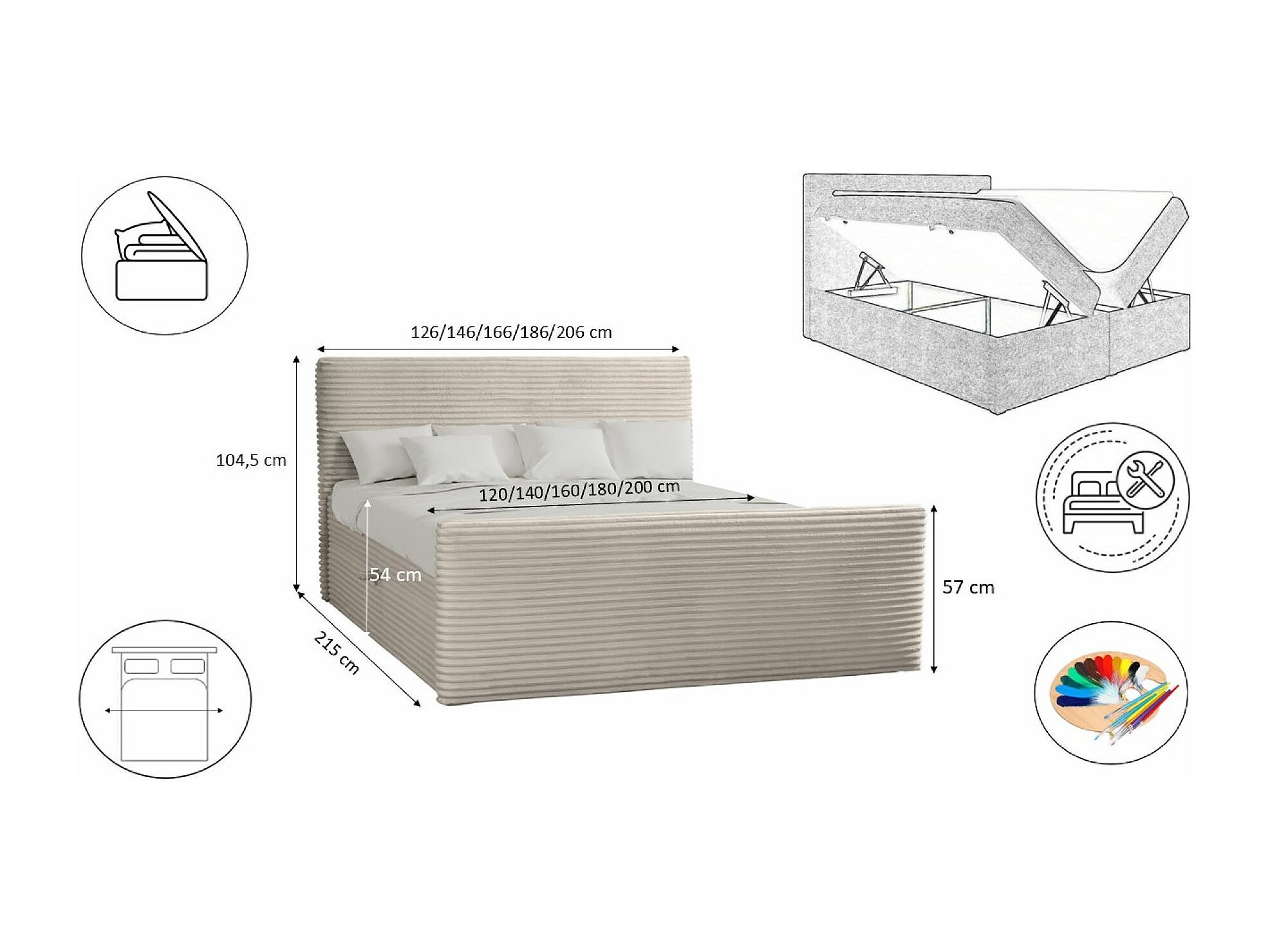 Letto box spring con rete e topper TRENTO tessuto peluche cordoncino 200x200 cm Ecru H3-Bonell