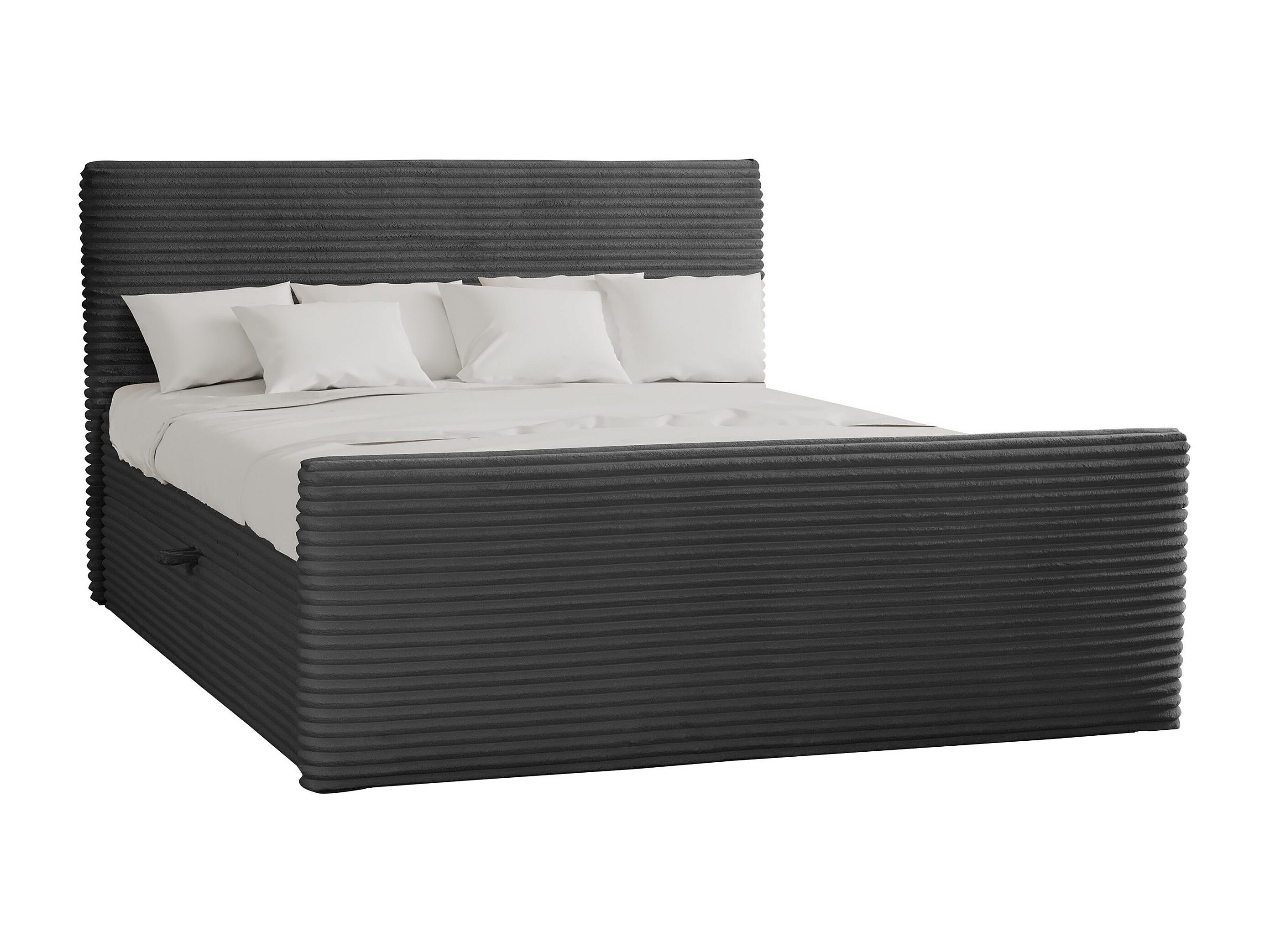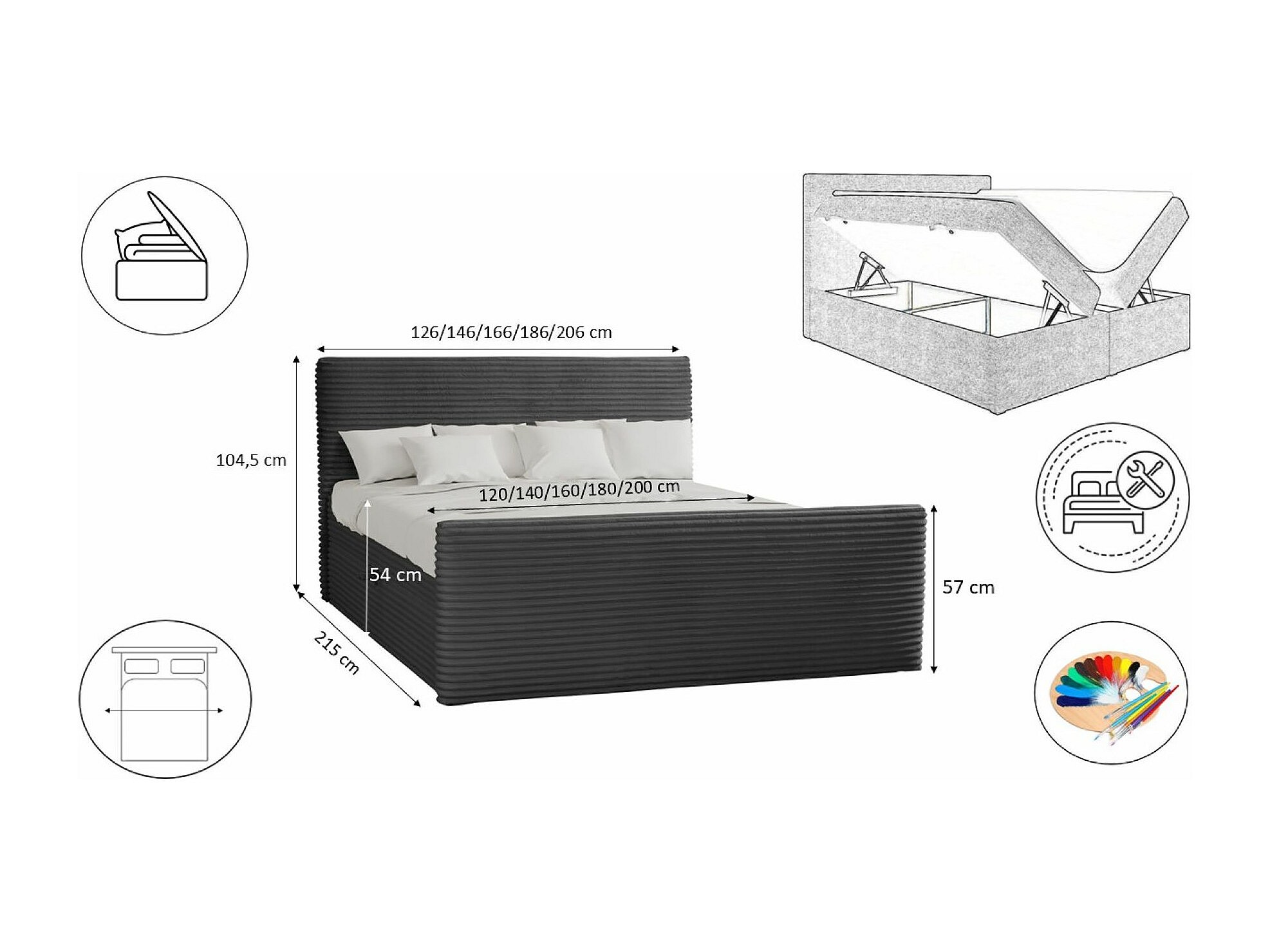 Letto box spring con rete e topper TRENTO tessuto peluche cordoncino 200x200 cm grafite H3-Bonell