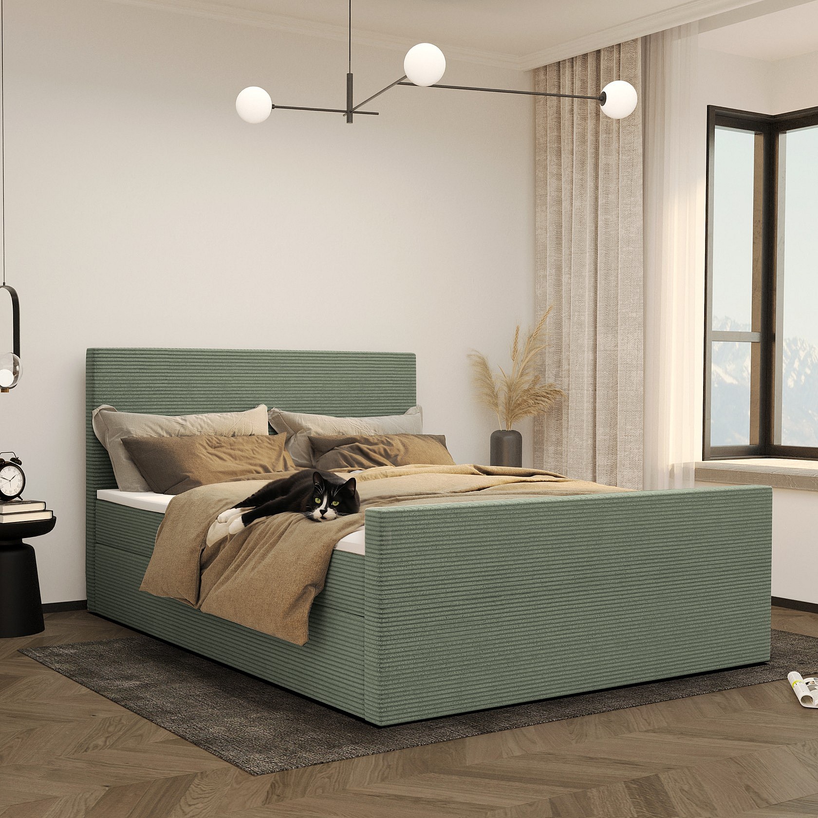 Letto box spring con rete e topper VIESTA tessuto Poso verde chiaro 140x200 cm H3-Bonell
