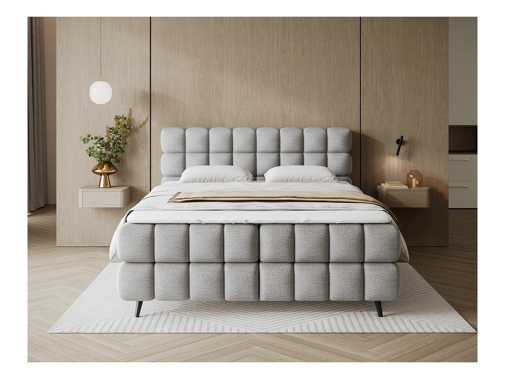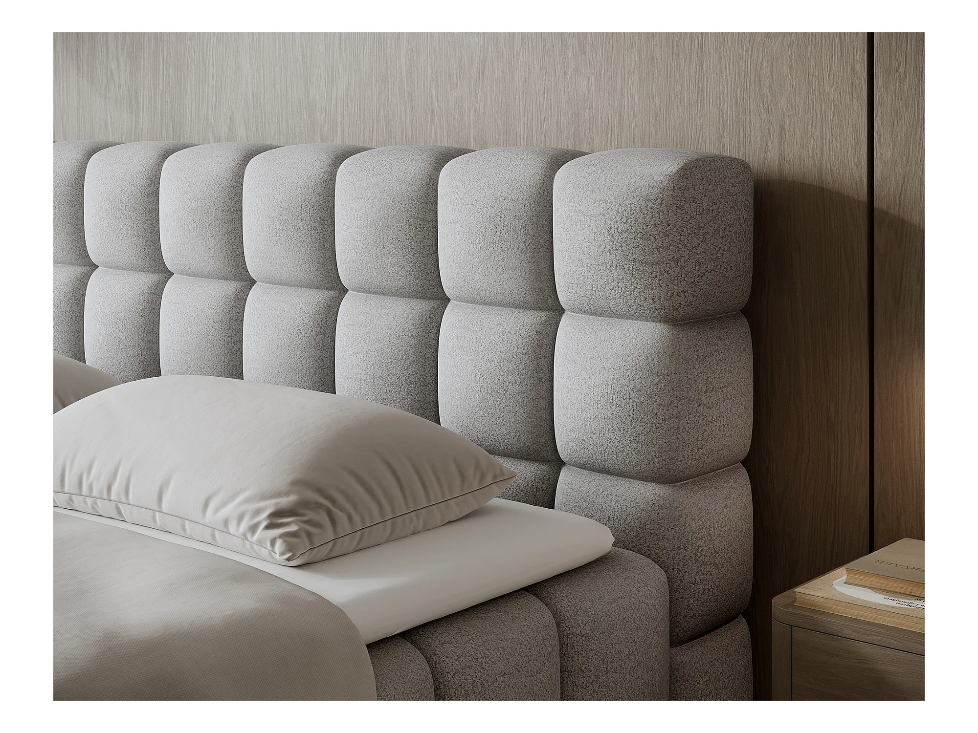 Letto box spring con materasso e contenitore, tessuto LUDANO Noel grigio chiaro 140x200 cm H2-Pocket