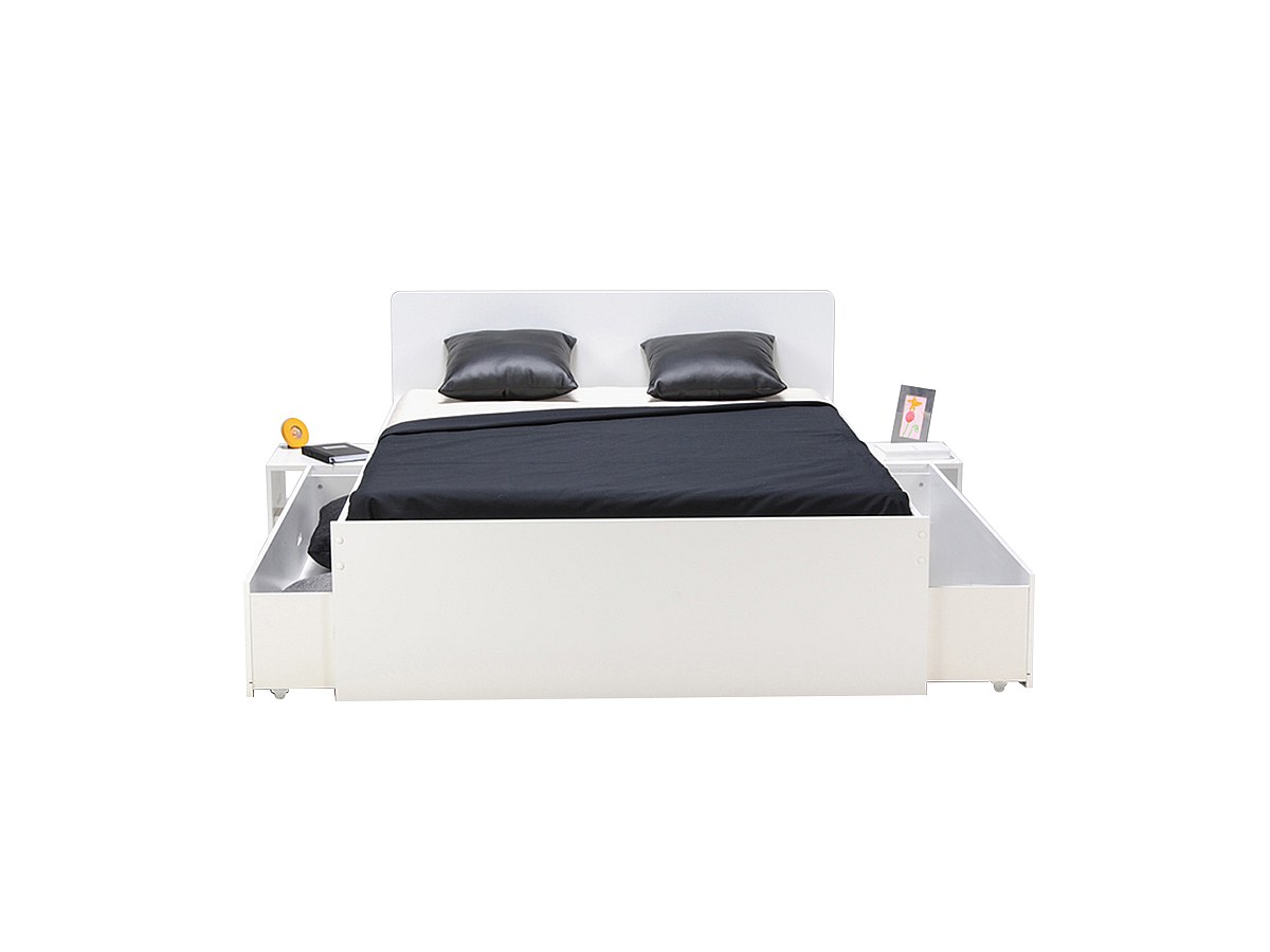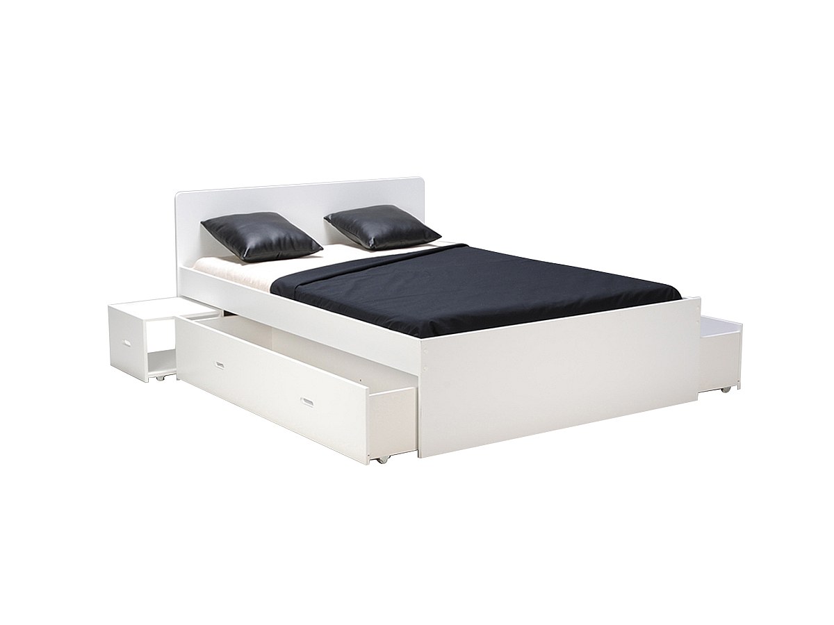 Letto matrimoniale alla francese con 2 comodini e 2 cassetti 140 x 190 cm Laccato bianco - PACOME