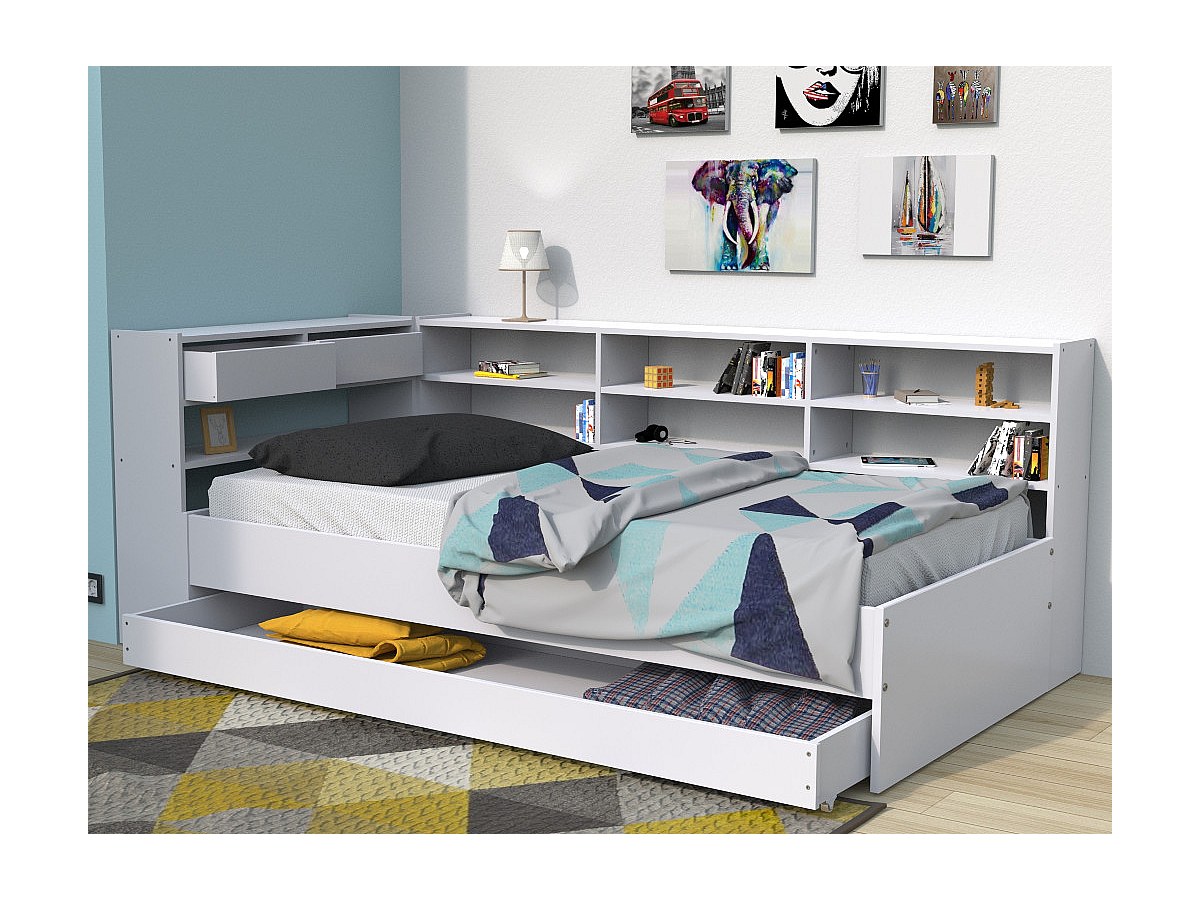 Letto singolo con cassetti e scaffali 90 x 190 cm Bianco - RENATO II