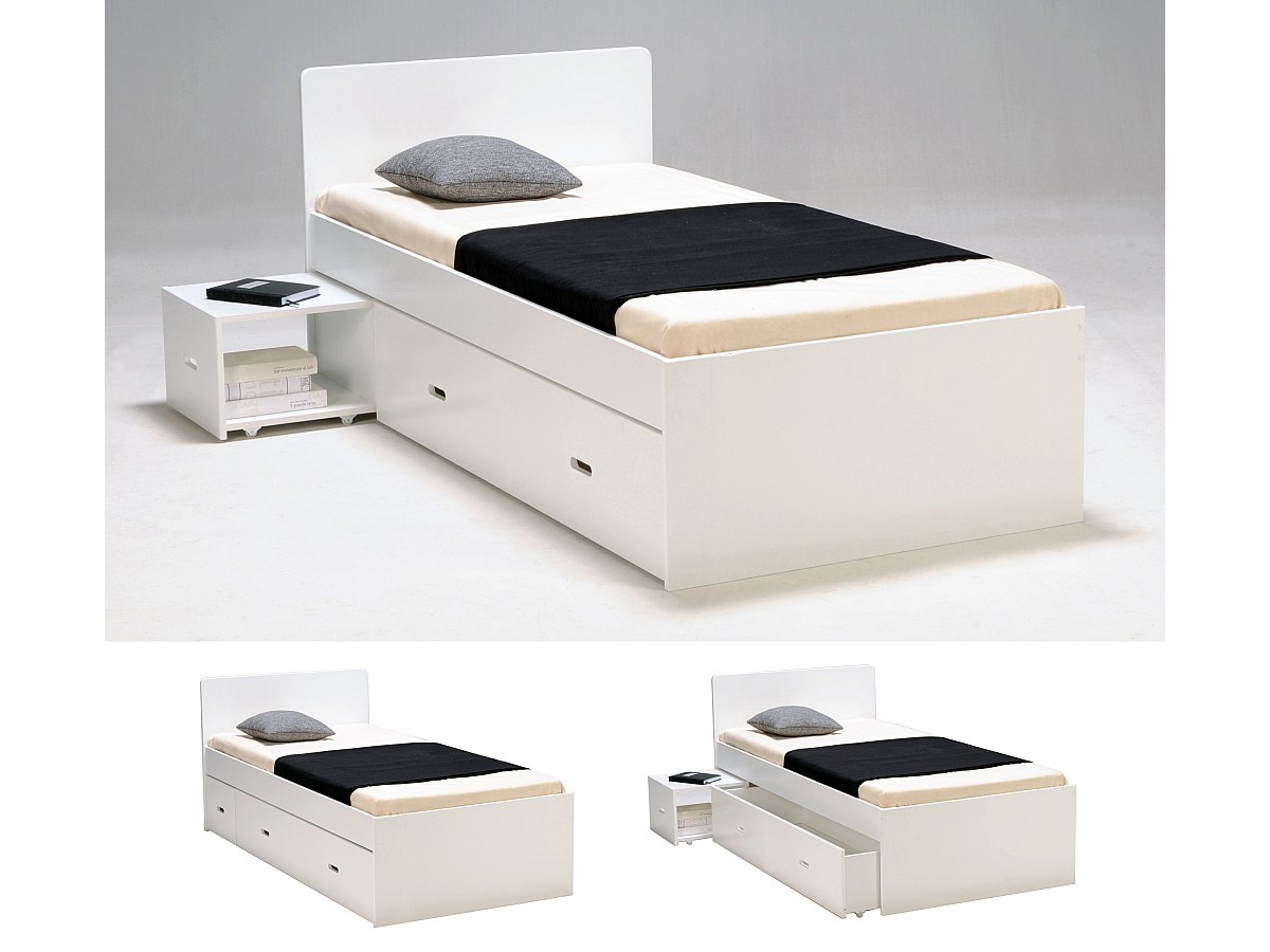 Letto singolo con comodino e cassetto 90 x 190 cm Laccato bianco - PACOME