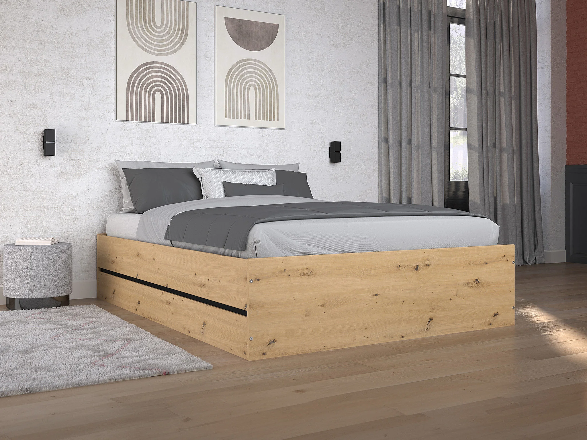 Letto con contenitore 140 x 190 cm Naturale e Nero + Materasso - LUDARO
