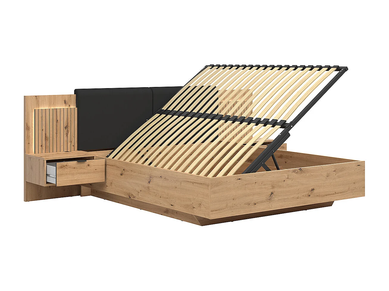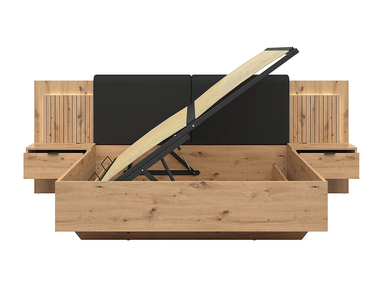 Letto con contenitore con base Mao marrone effetto quercia 160x200