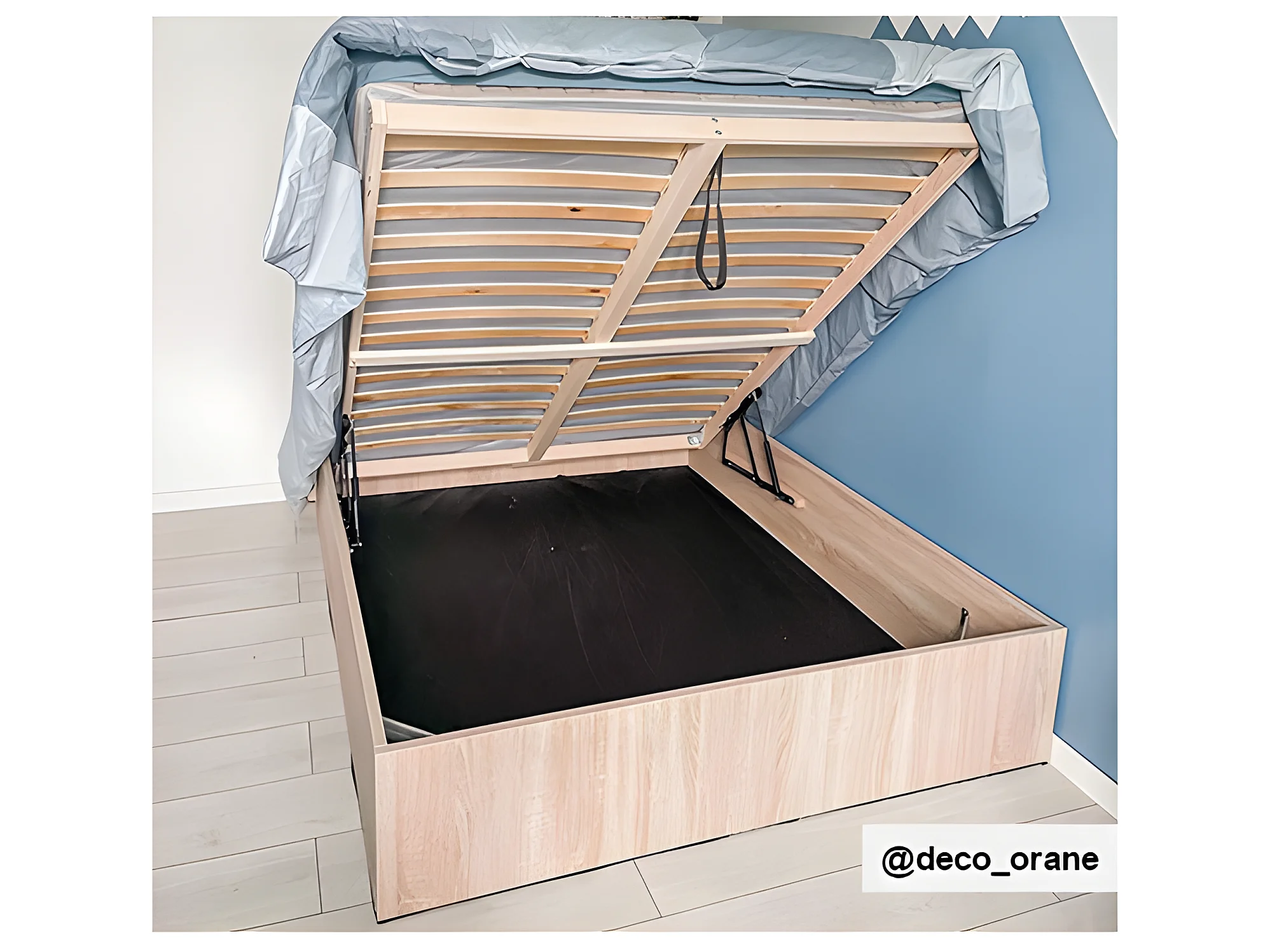 Letto matrimoniale alla francese contenitore 140 x 190 cm - colore Naturale - ELPHEGE