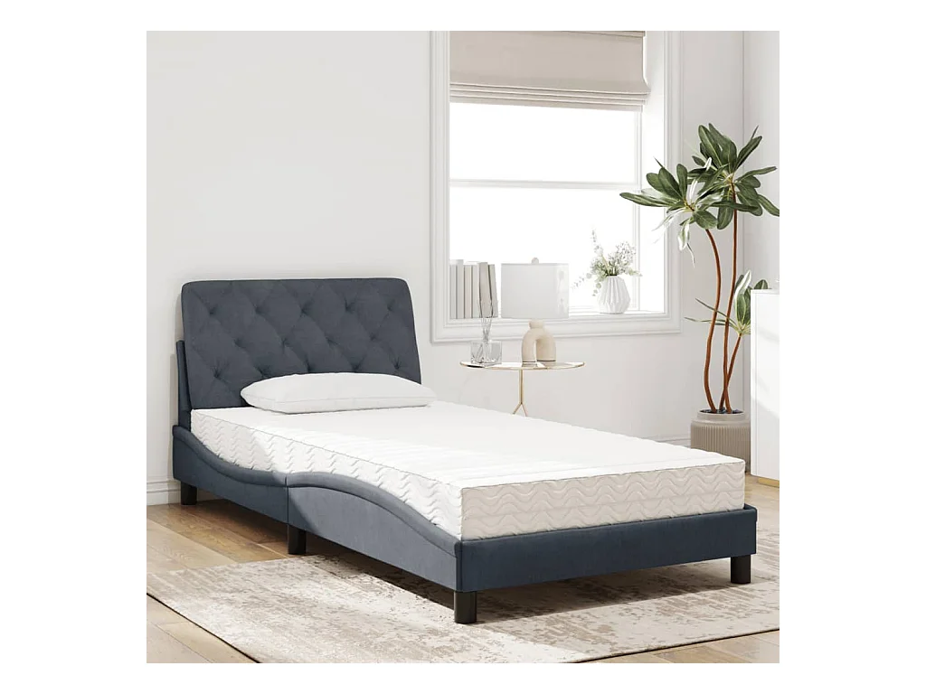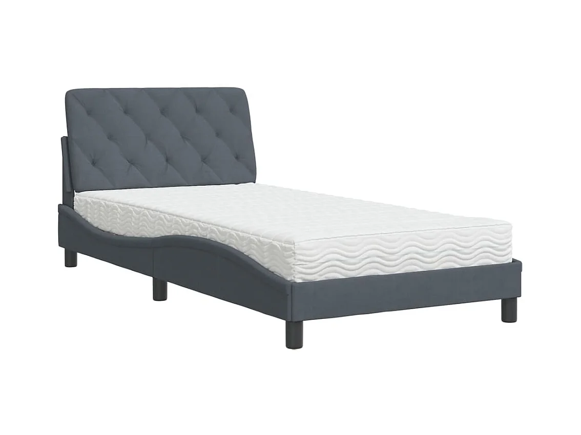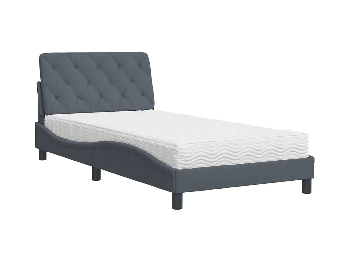 Letto con materasso grigio scuro 100x200 cm in velluto