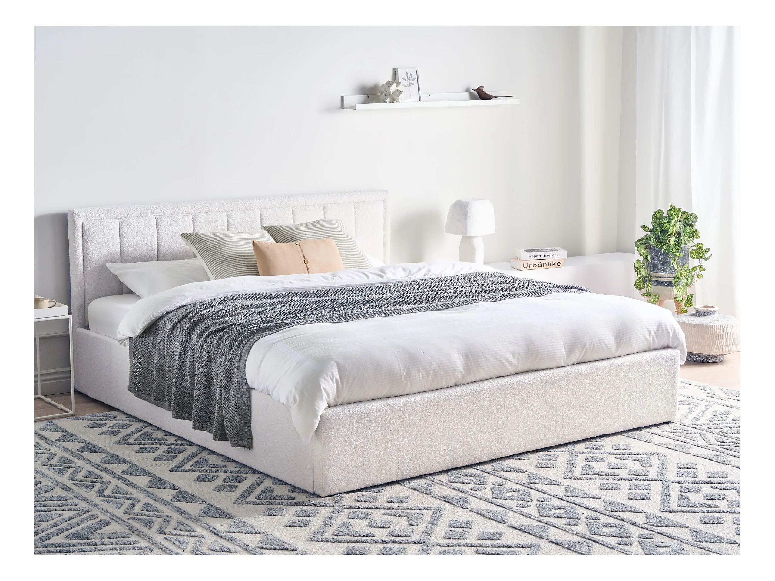 Letto con ottomano Bouclé MONTLAUR 180 x 200 cm Bianco