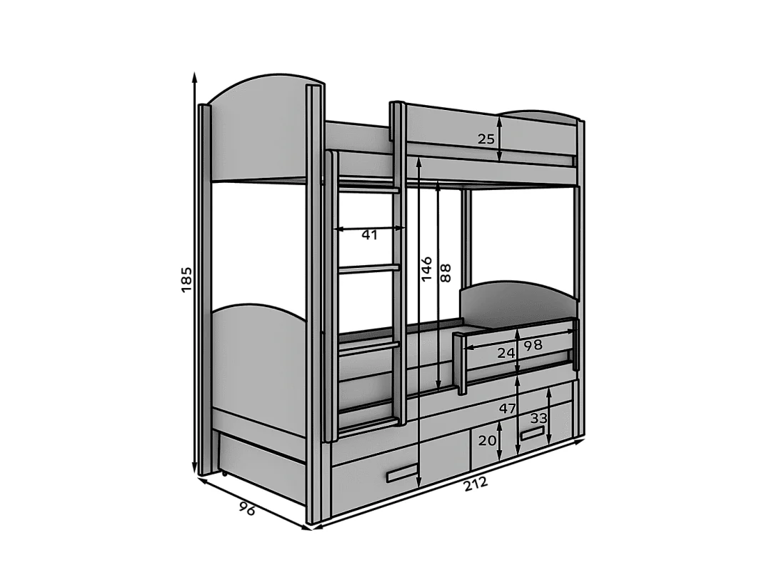 Letto a castello senza materasso con scivolo bianco nero 90x200 cm