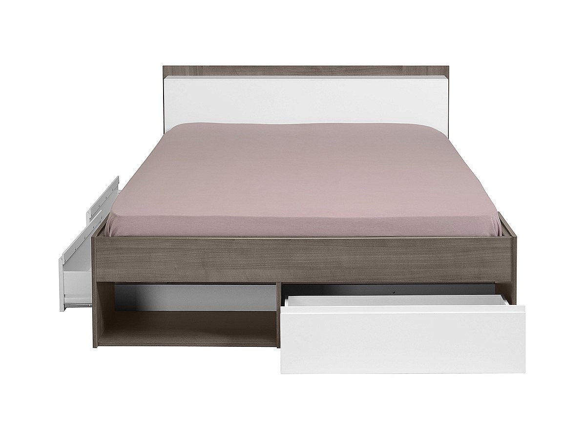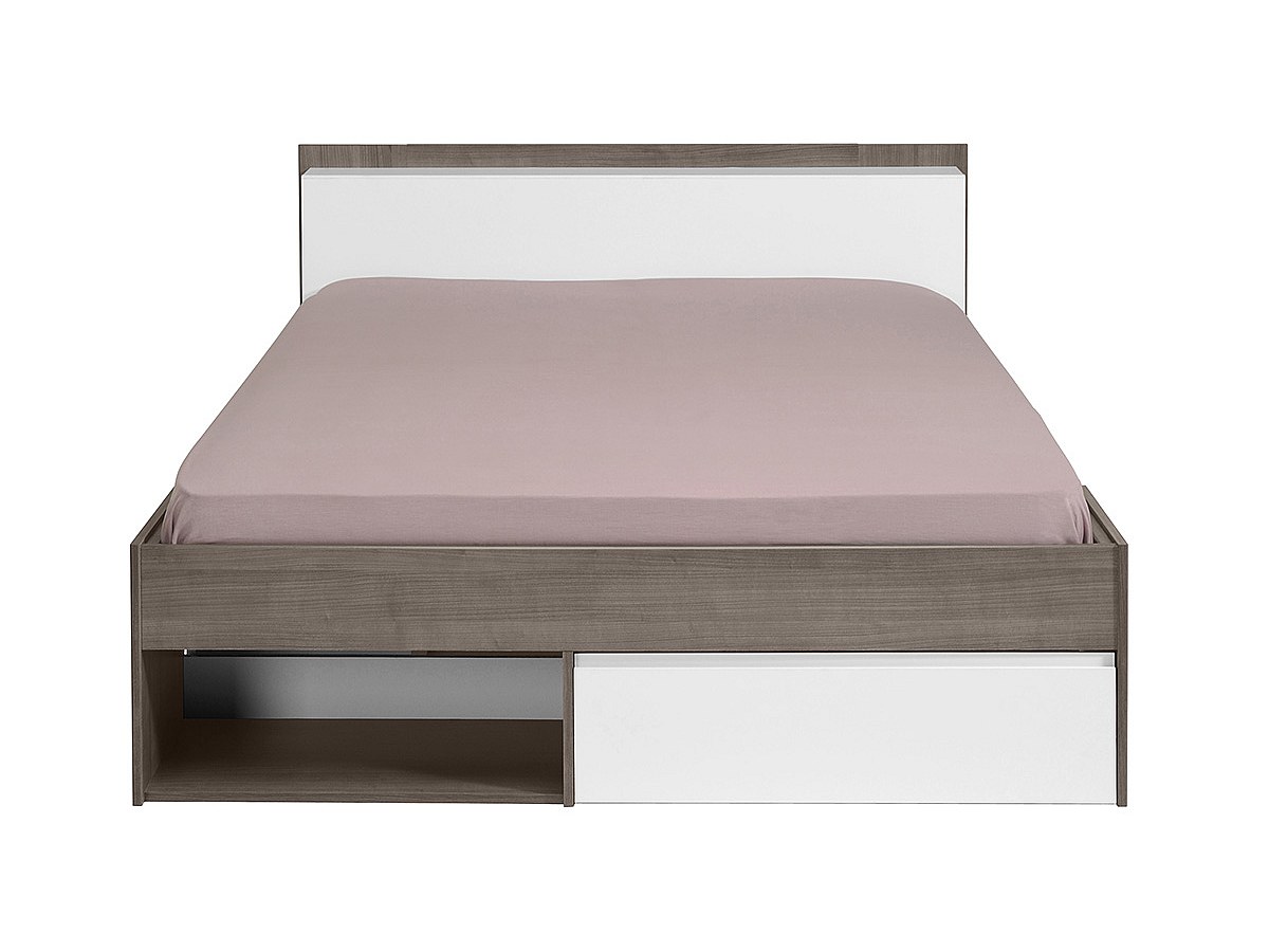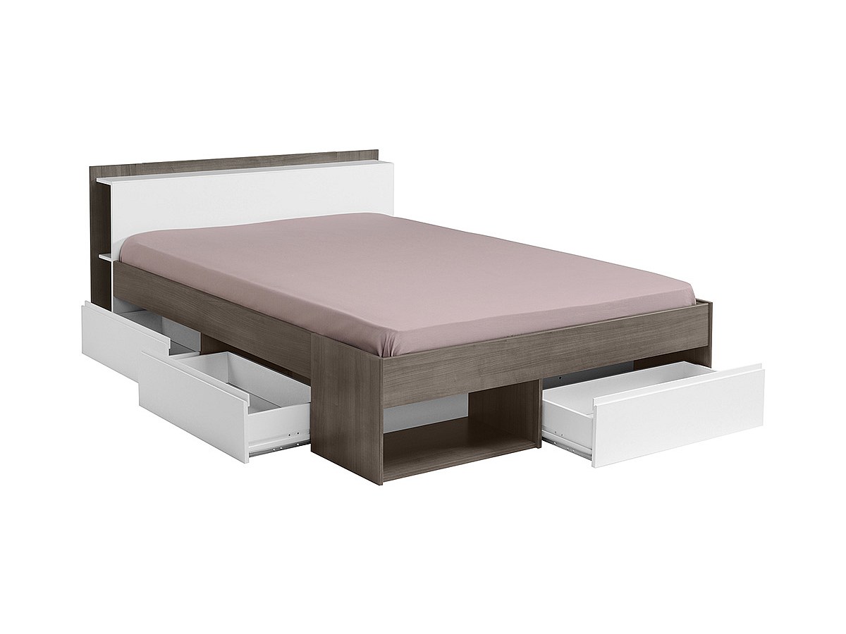 Letto matrimoniale alla francese con scomparti modulare 140 x 190 cm o 140 x 200 cm Tortora e bianco - DEBAR