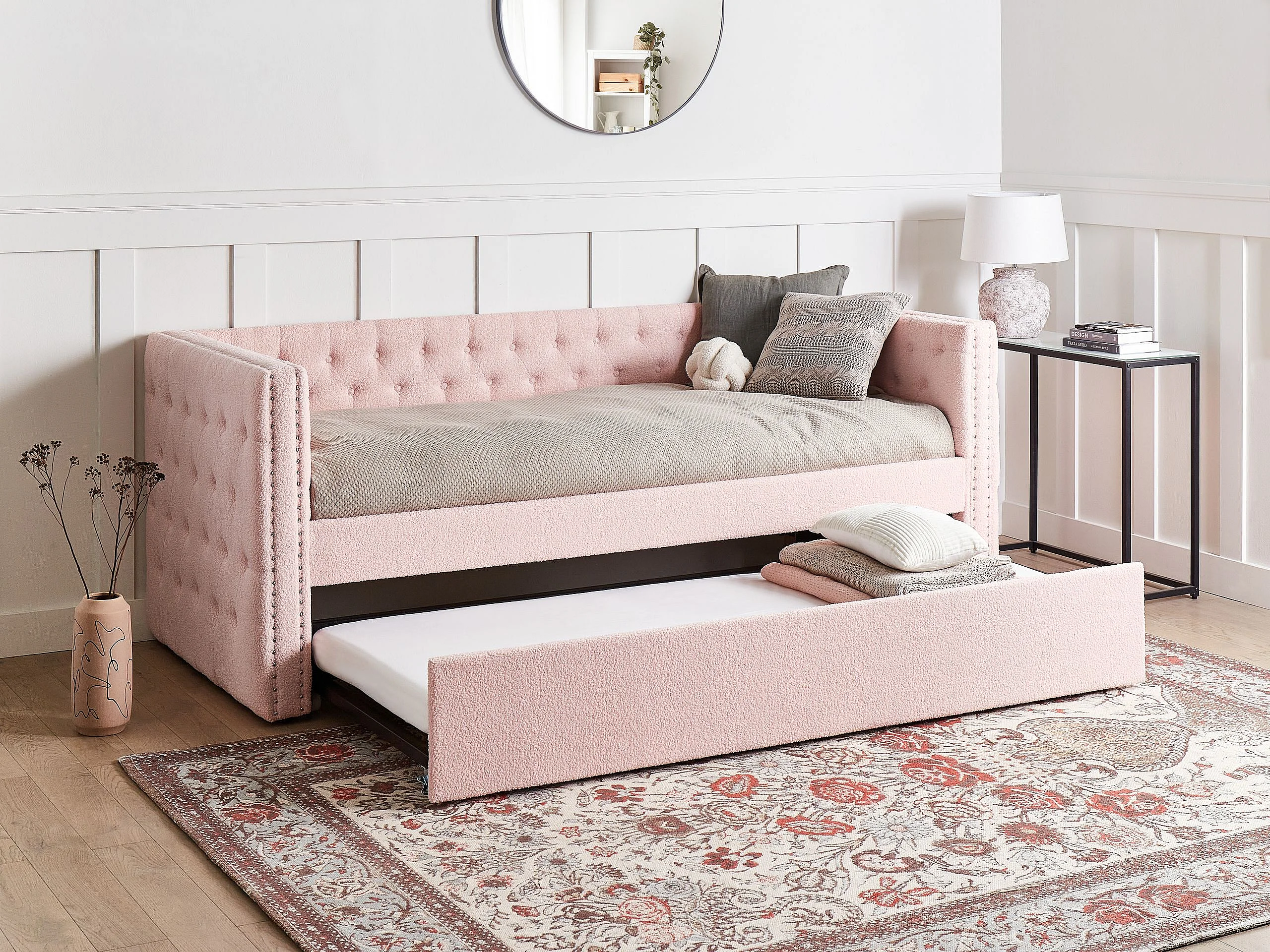 Letto estraibile Bouclé GASSIN 90 x 200 cm Rosa pastello