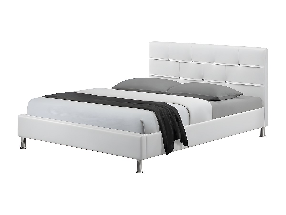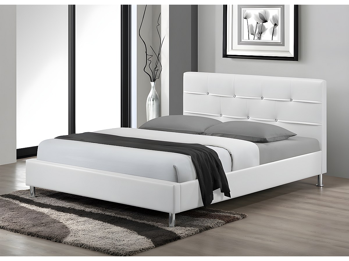 Letto matrimoniale alla francese con bottoni effetto diamante 140 x 190 cm in Similpelle Bianca - GABIN