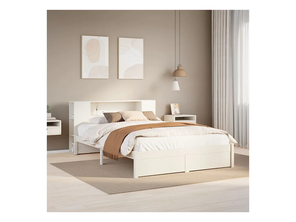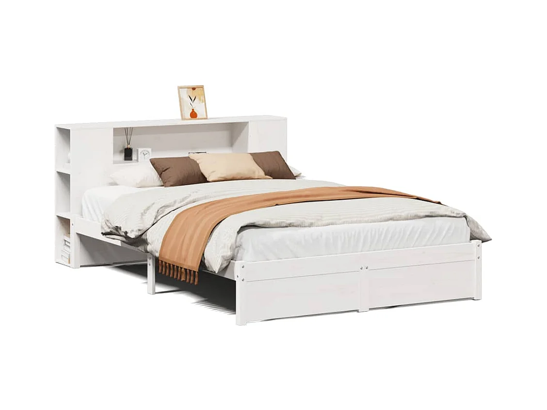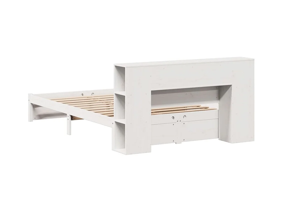 Letto libreria bianco senza materasso 140x200 cm in legno massello di pino