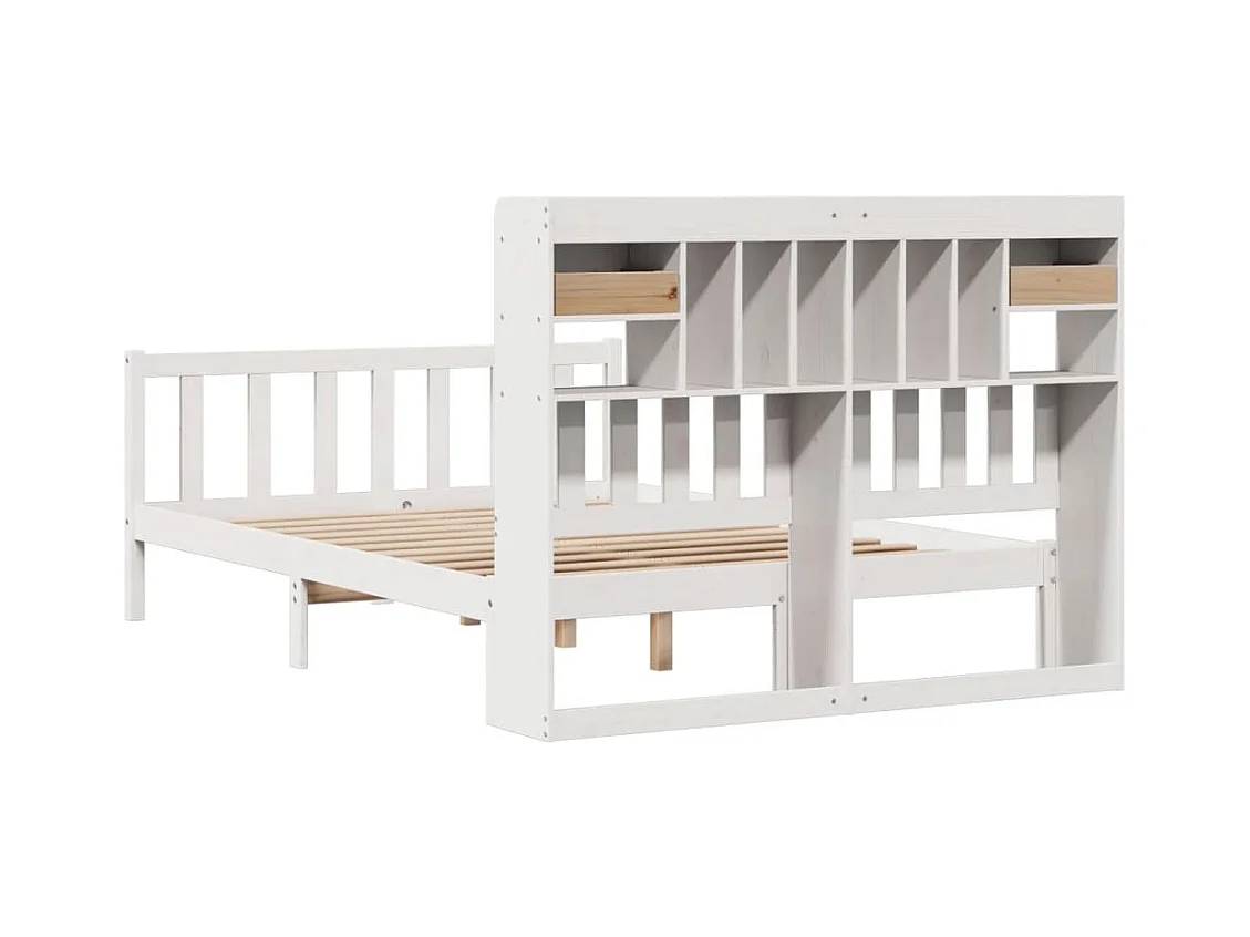 Letto libreria bianco senza materasso 140x200 cm in legno massello di pino