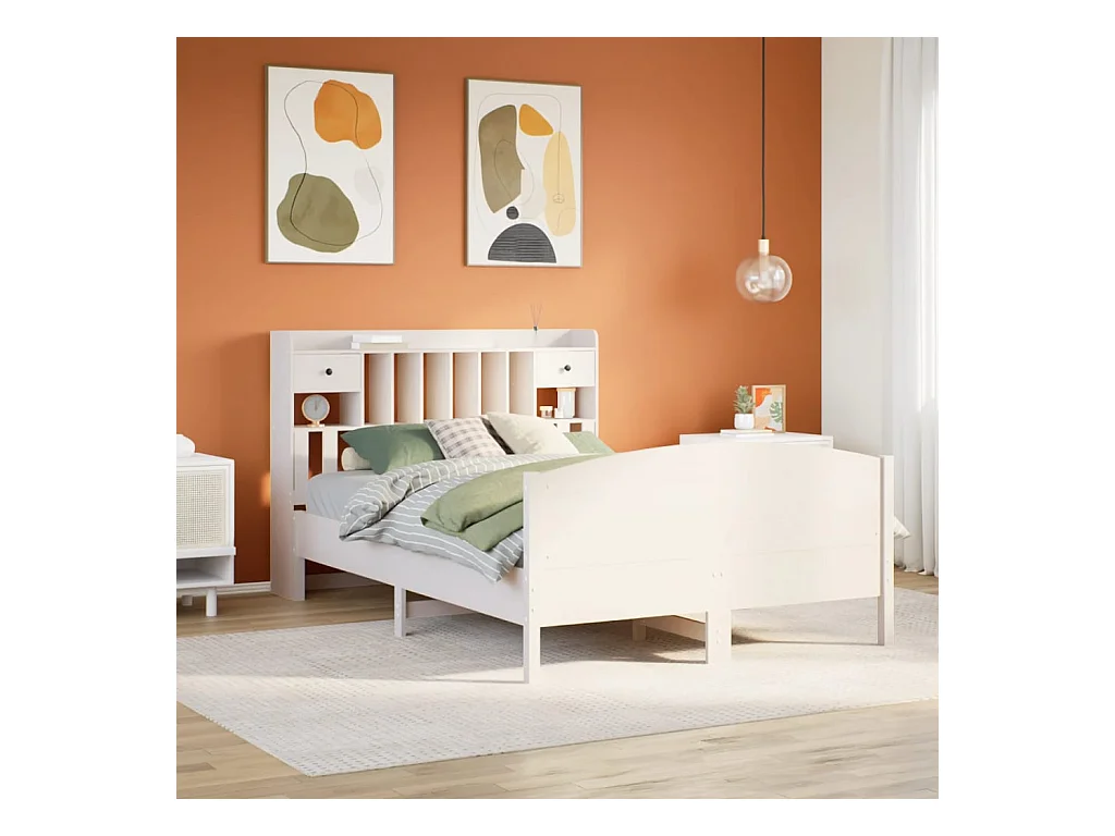 Letto libreria bianco senza materasso 140x200 cm in legno massello di pino