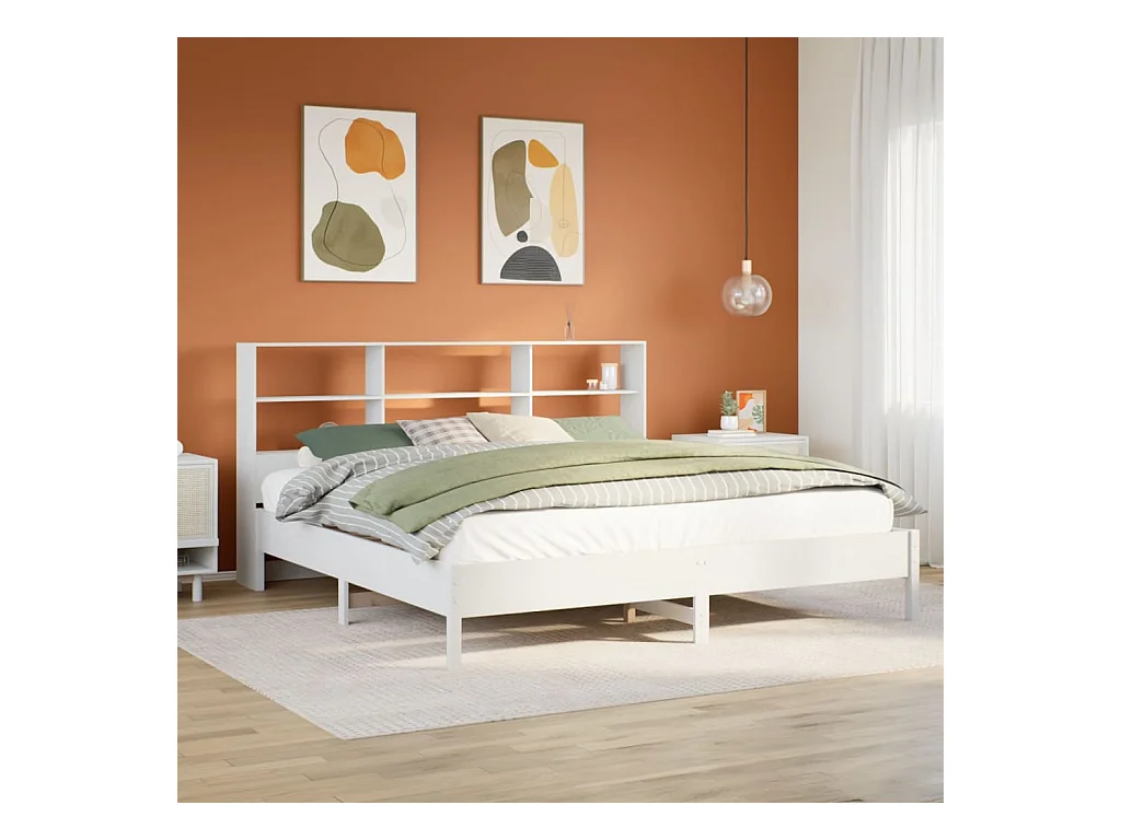 Letto libreria bianco senza materasso 180x200 cm in legno massello di pino