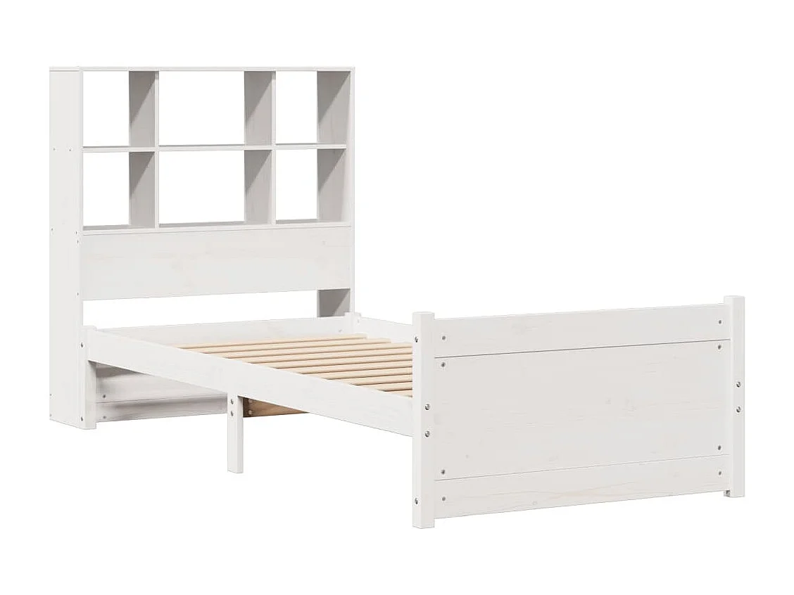 Letto libreria bianco senza materasso 90x190cm in legno massello di pino