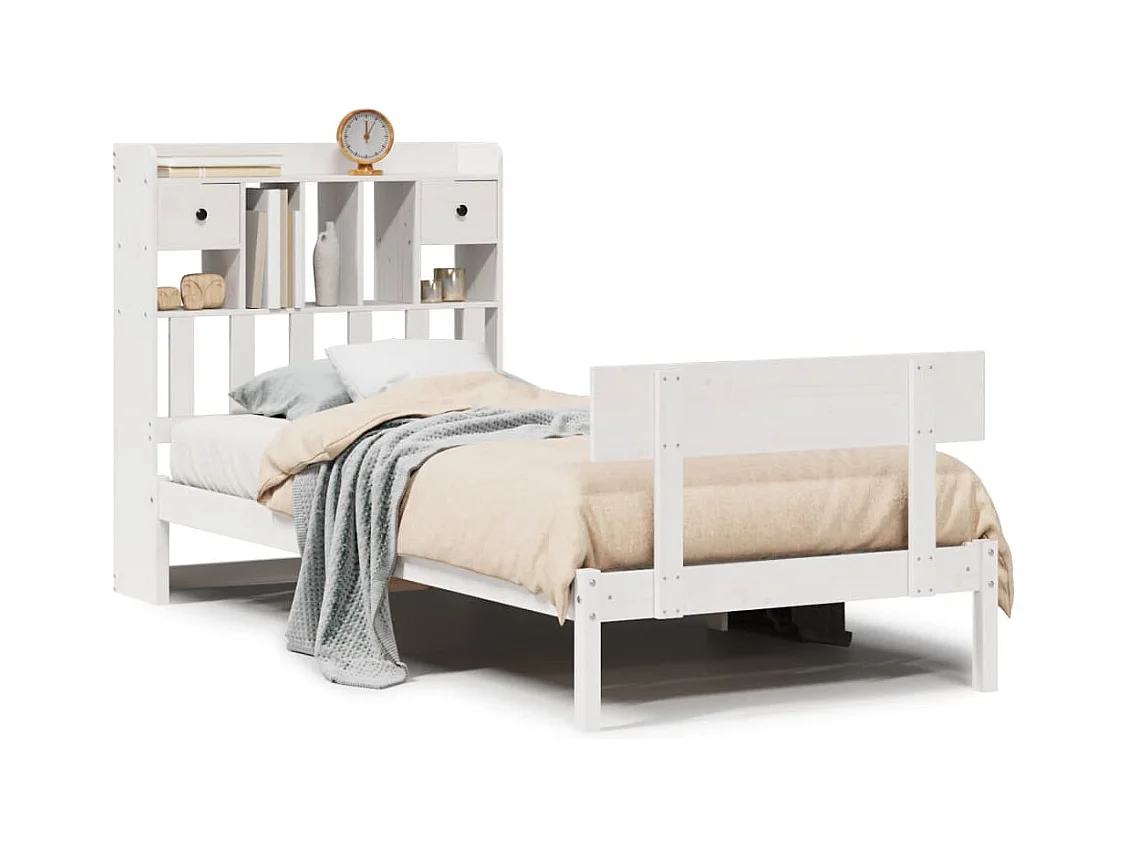 Letto libreria bianco senza materasso 90x190cm in legno massello di pino