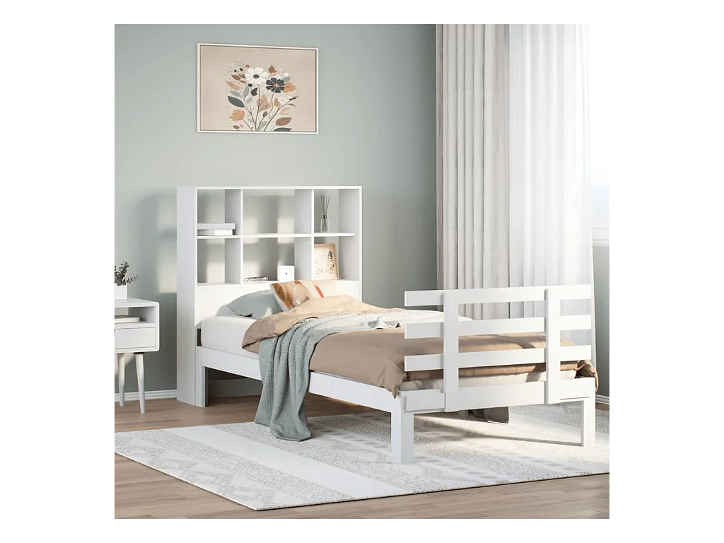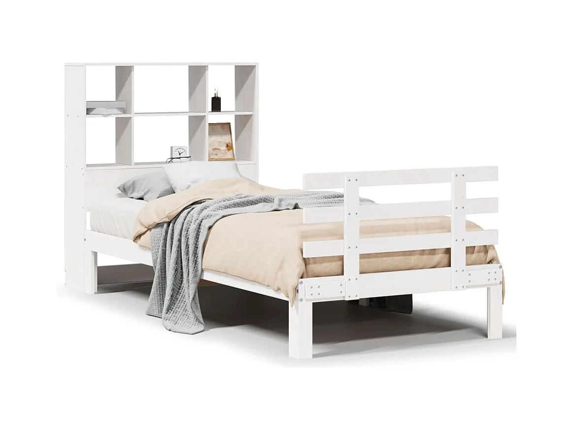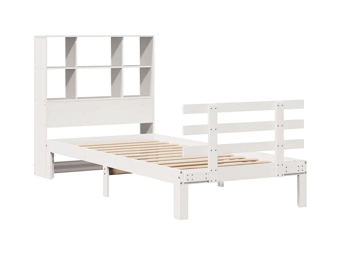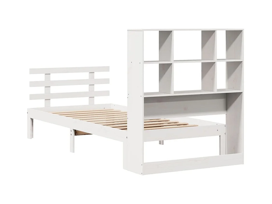 Letto libreria bianco senza materasso 90x200cm in legno massello di pino