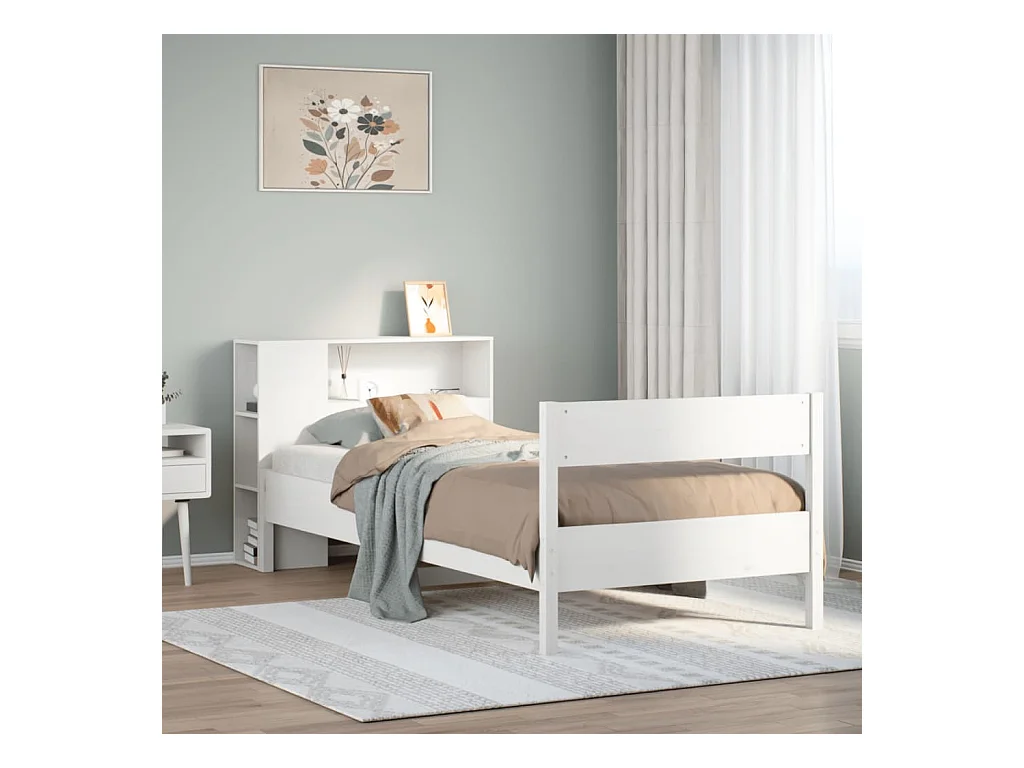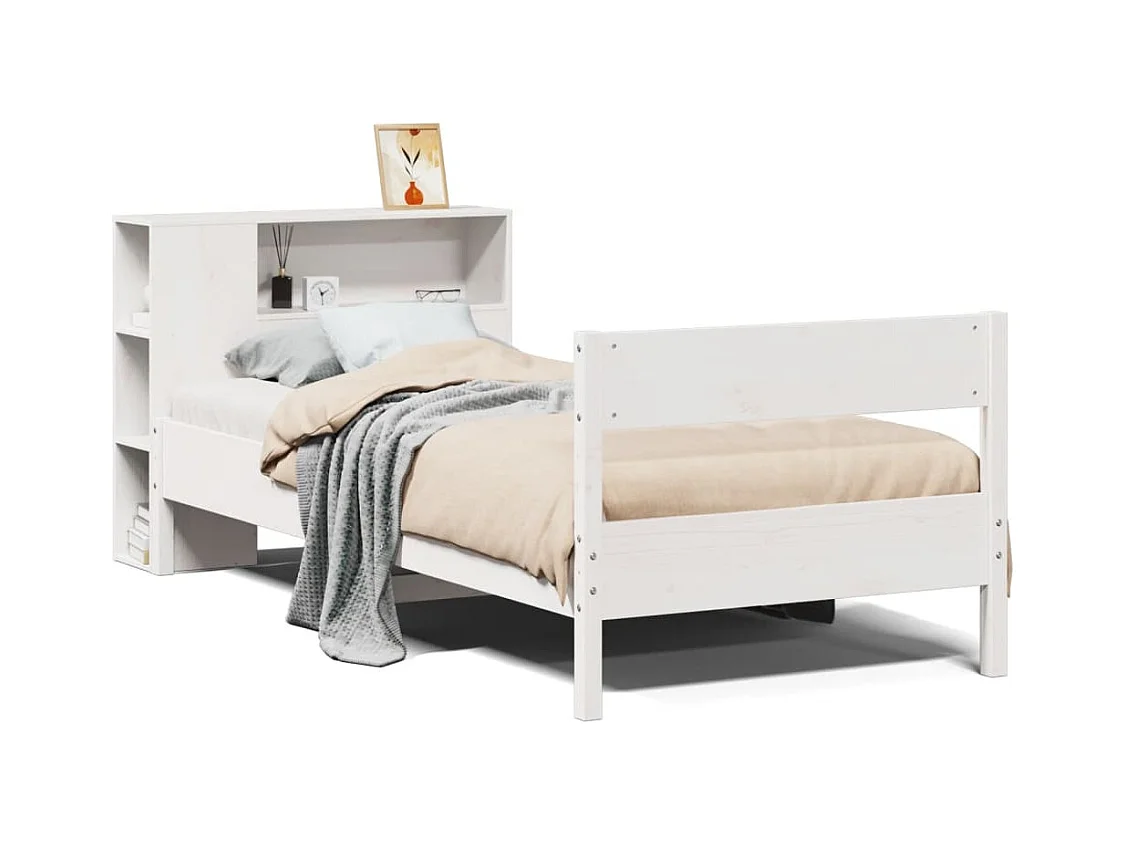 Letto Libreria senza Materasso Bianco 90x190 cm Massello Pino