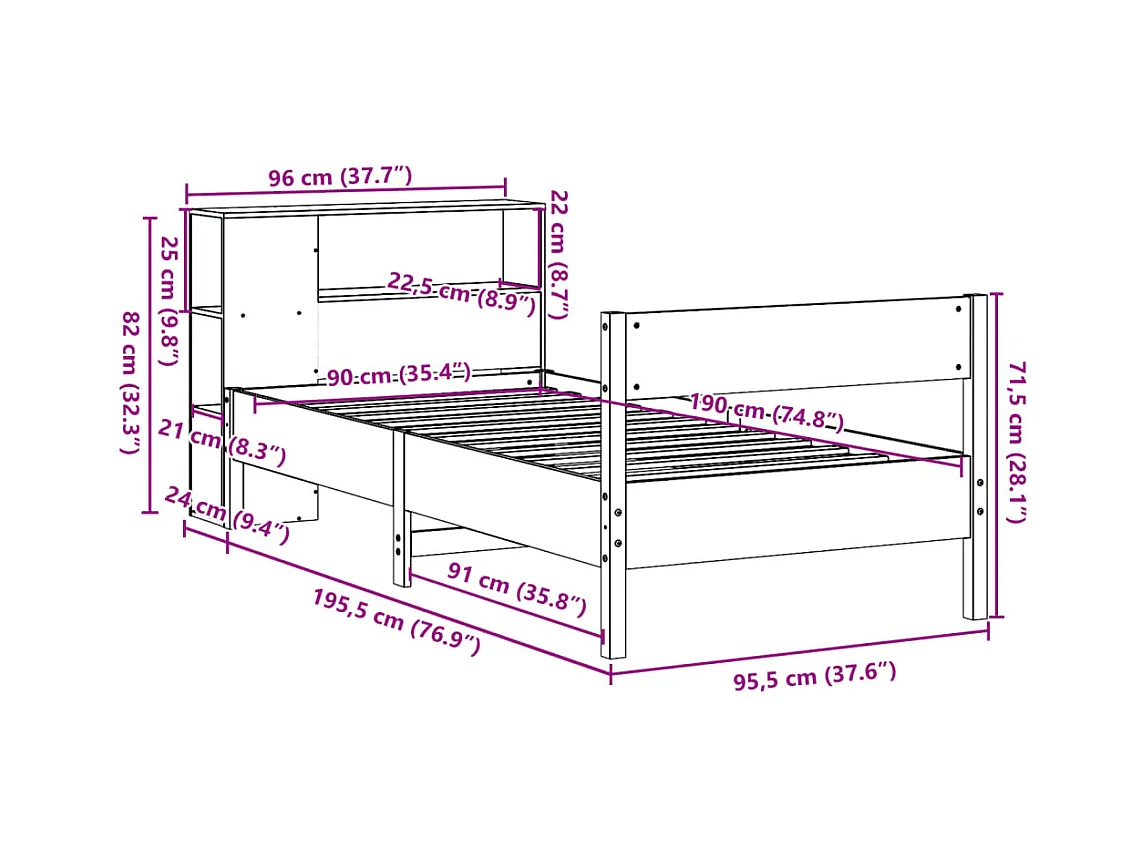 Letto Libreria senza Materasso 90x190 cm Legno Massello