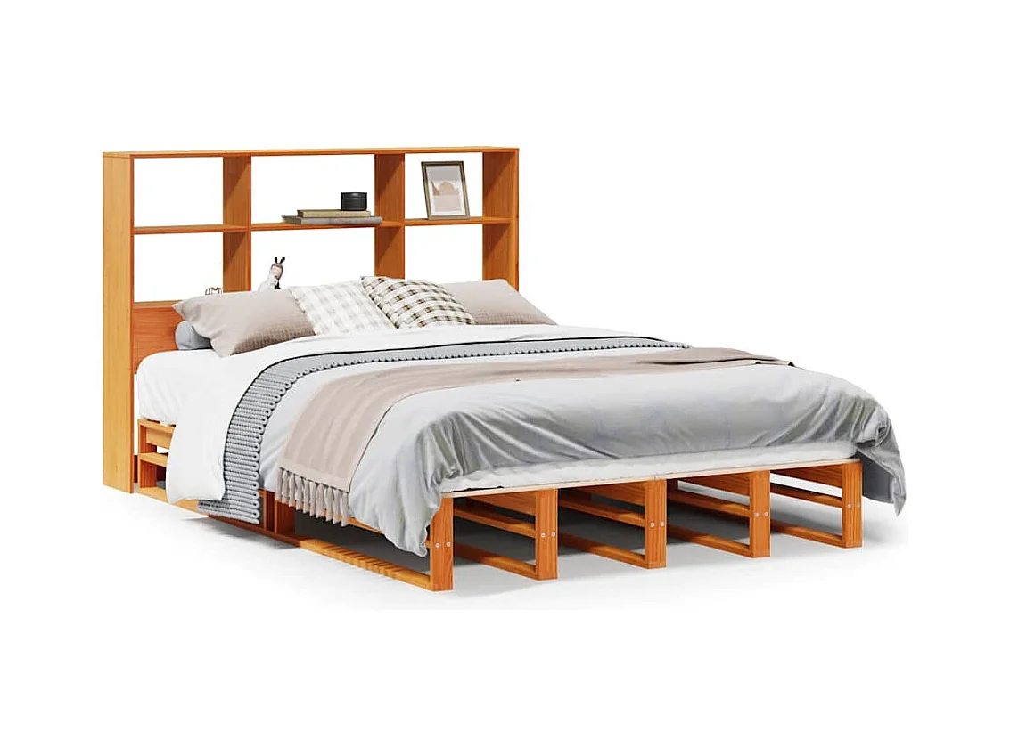 Letto libreria senza materasso, cera marrone, 140x200 cm, pino massiccio