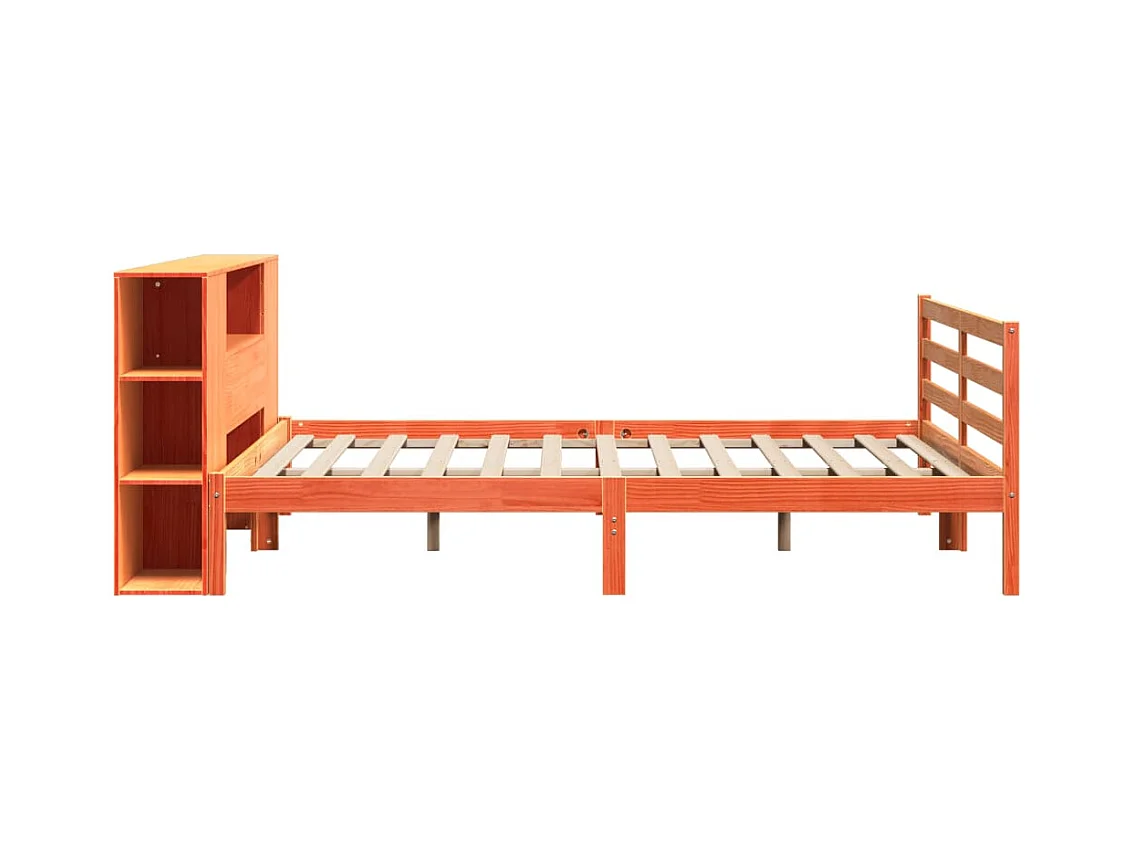 Letto libreria senza materasso, cera marrone, 200x200 cm, pino massiccio