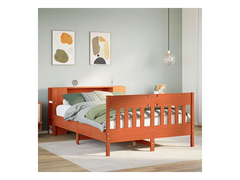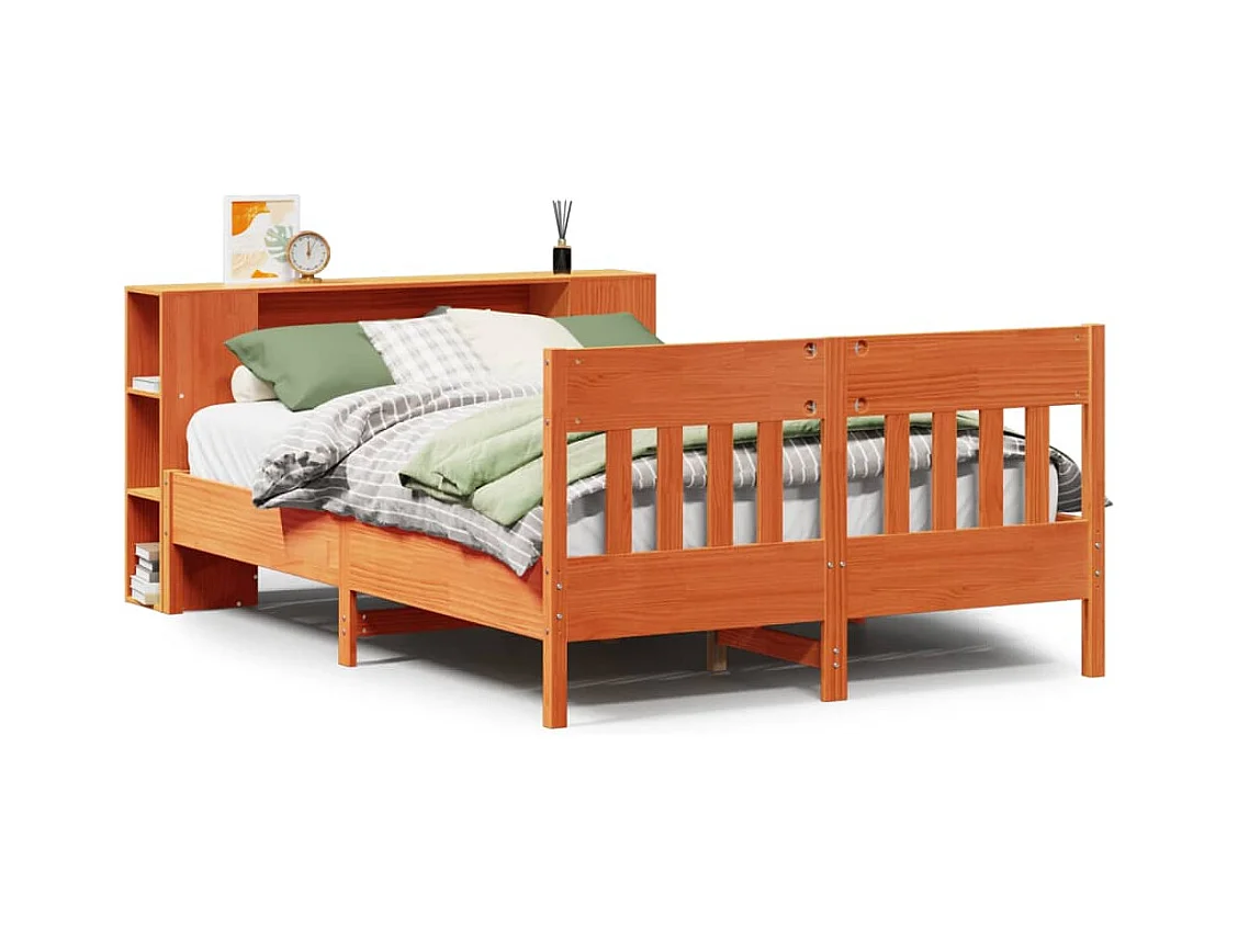 Letto Libreria senza Materasso Marrone Cera 140x200 cm in Pino